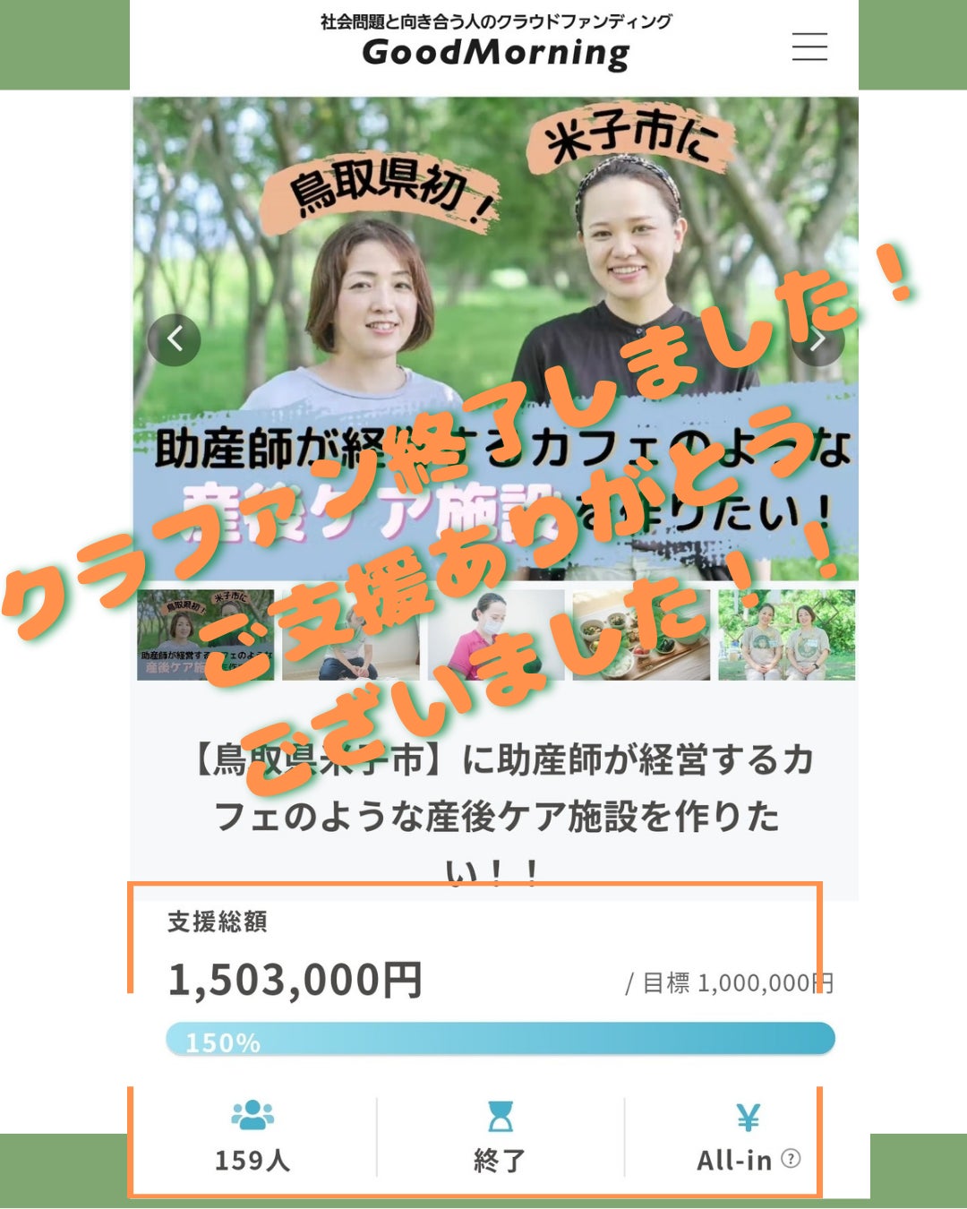 【鳥取県米子市】に助産師が経営するカフェのような産後ケア施設を作りたい!!