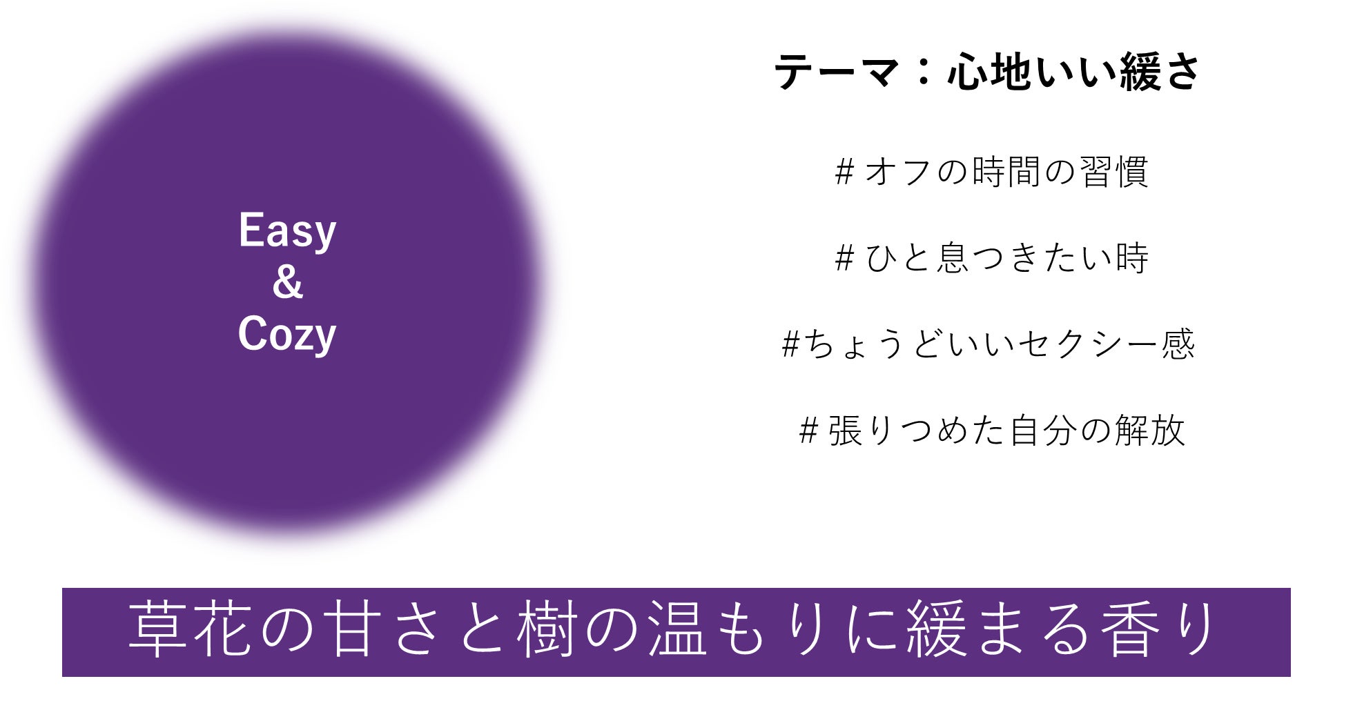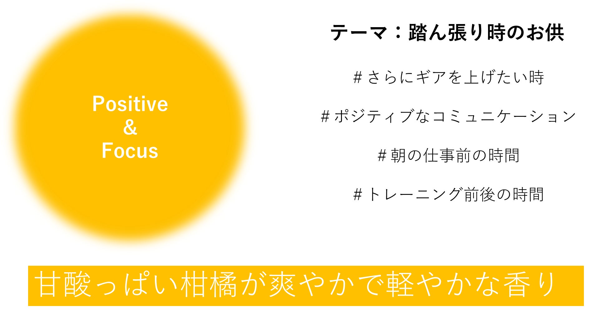 1本で多用途に活用できるのがこのフレグランスミストのいいところ。お勧めは仕事前や就業時間中はPositive & Focus やSilence & Inspiration を活用し、OFFの時間や就寝時にEasy & Cozyを活用していただくことです。さらに、ぜひその場で1回、香りを感じながら吐く息を長くする深呼吸をしてみてください。
