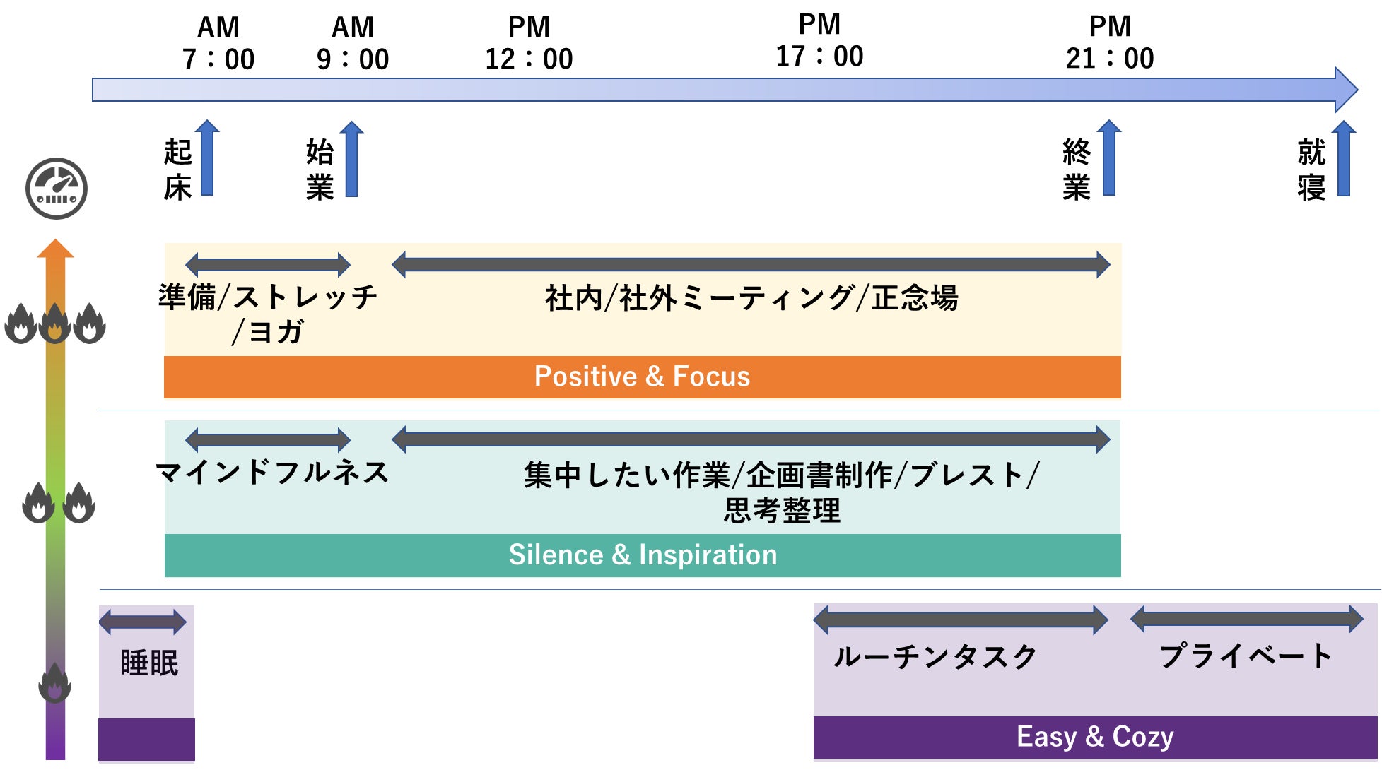 リモートワークが以前よりも一般化し、働き方に自由度が増しました。一方でON / OFFの切り替えや、「今以上にギアを上げる」「少し力を抜く」というサジ加減に対して課題に感じている人も少なく無さそうです。何を隠そうブランドを立ち上げるまでの私自身がIT業界に身を置き、リモートワークで感じた改善したいポイントだったのです。