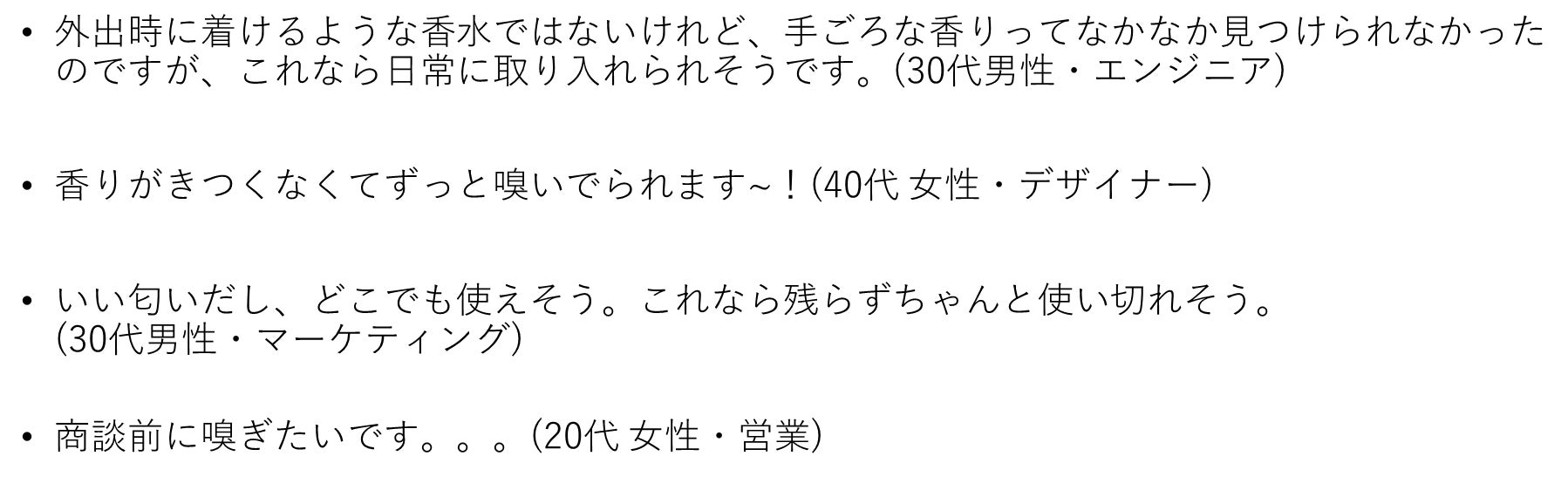 実際に香りを嗅いでいただいた方から一部、感想を抜粋させていただきました。