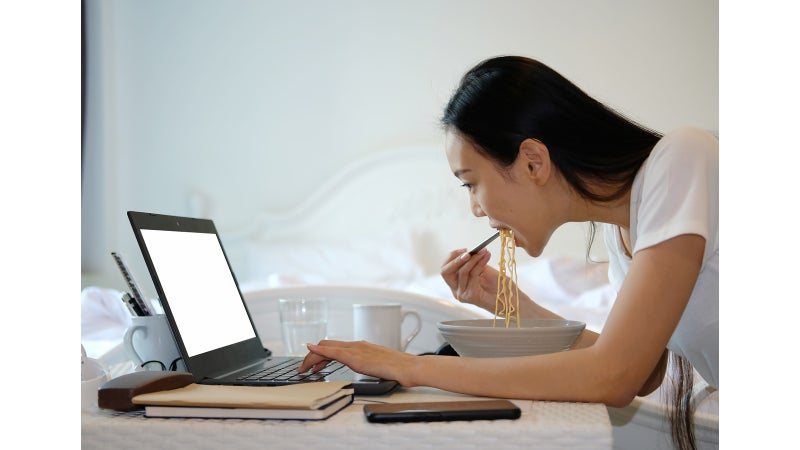 仕事や何かをしながら食事。休憩よりは胃を満たすための行為になっている。