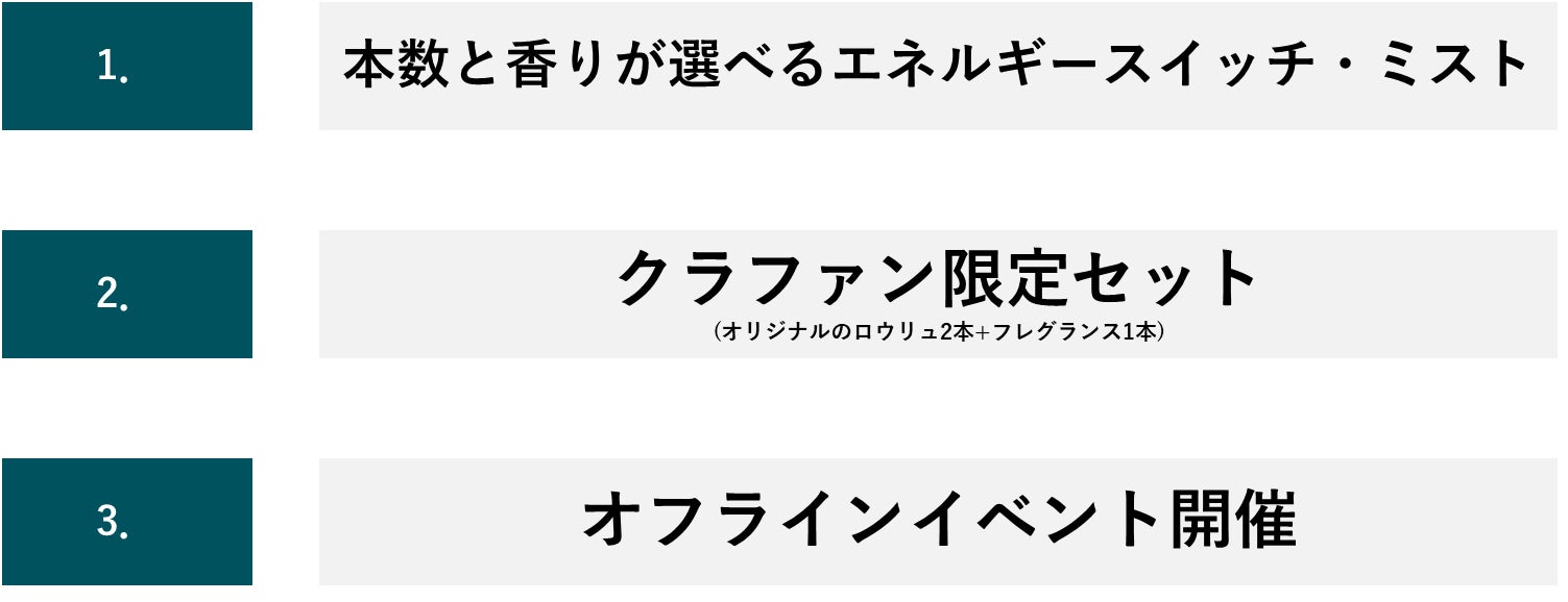 今回リリースする商品は「エネルギースイッチ・ミスト」3種類です。