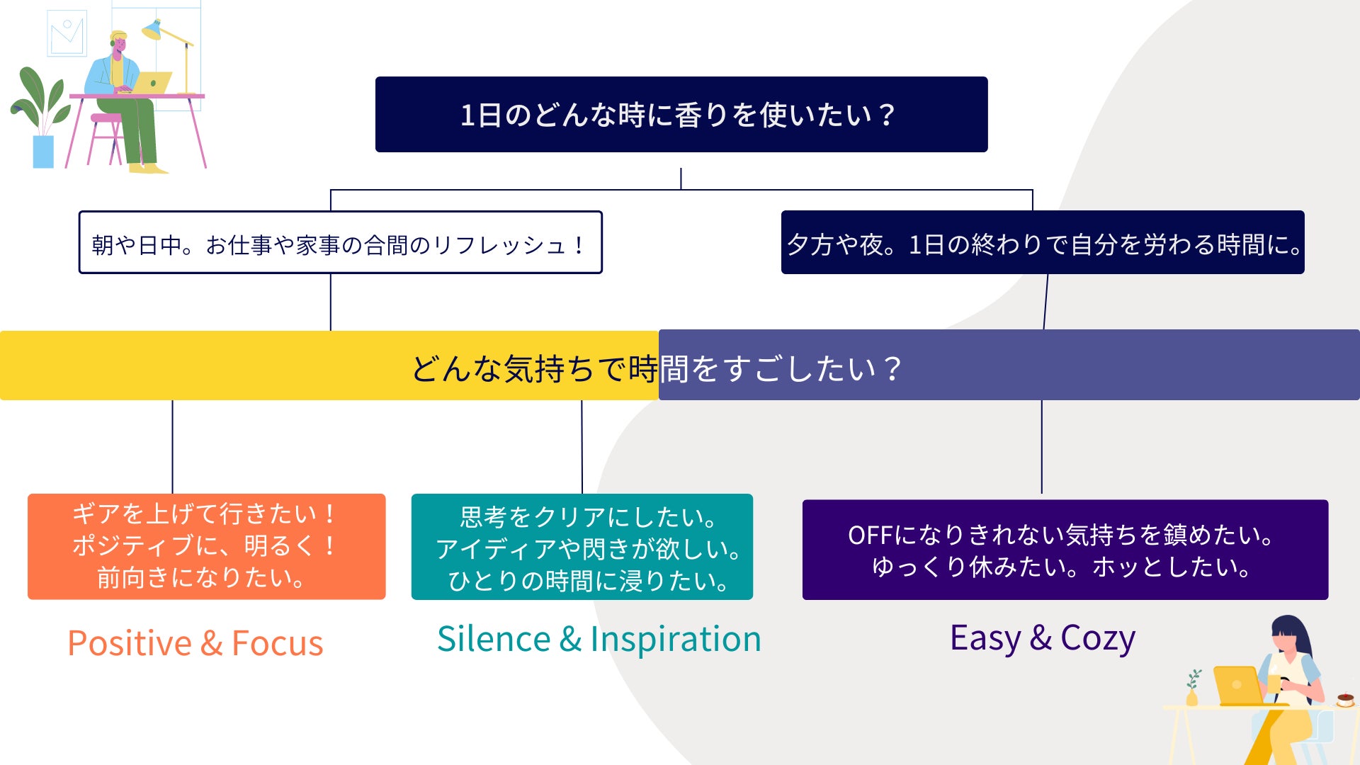 デジタルと共に日々を送る皆さんの日常に少しでも馴染むように3つの香りを仕立てました。