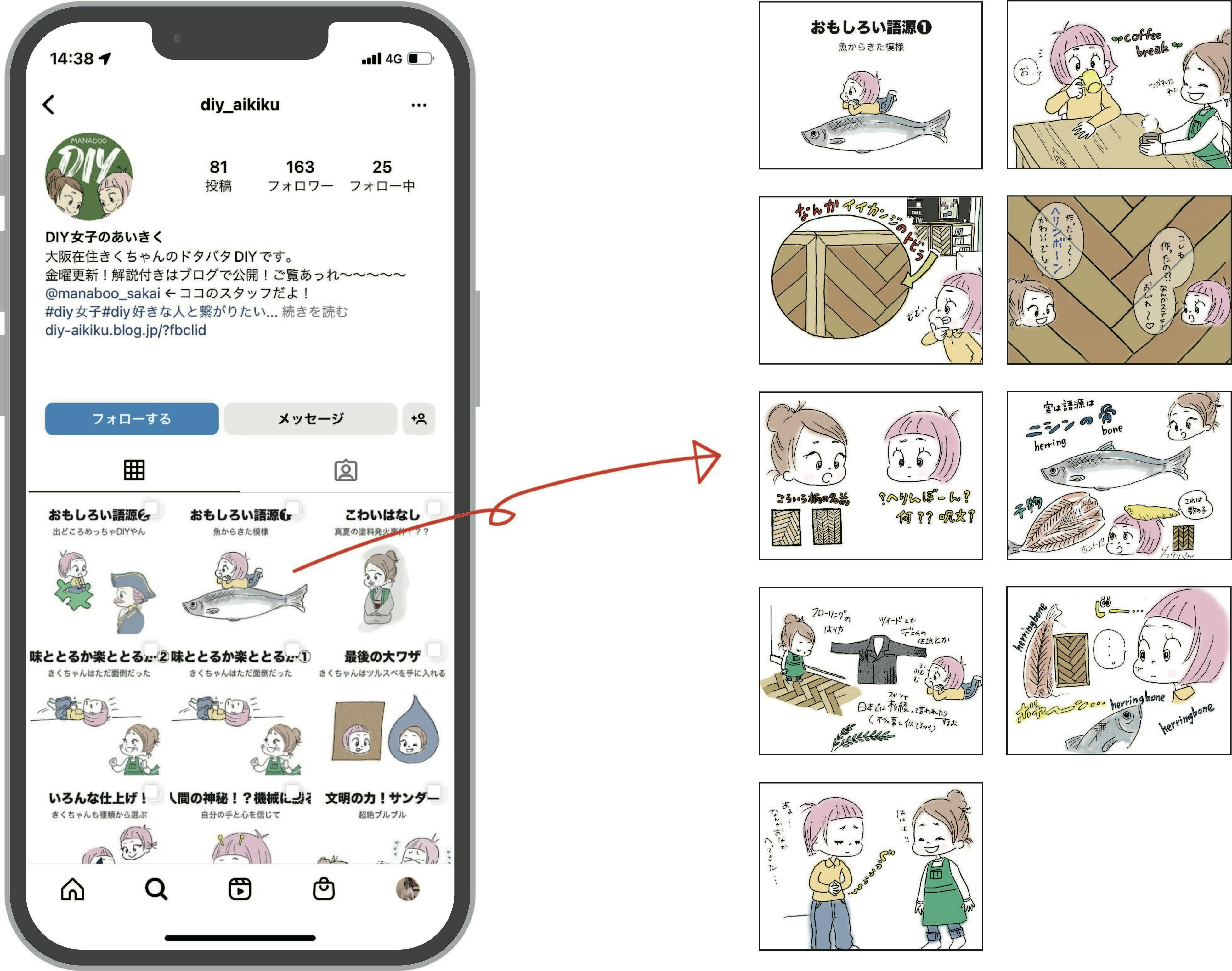 そこでわたしたちは、DIYをもっと身近に感じてもらうきっかけになればと思い、DIY初心者のスタッフと自宅をセルリノベーションしたスタッフの経験をもとにブログおよびインスタグラムへDIY漫画の投稿をはじめました。
