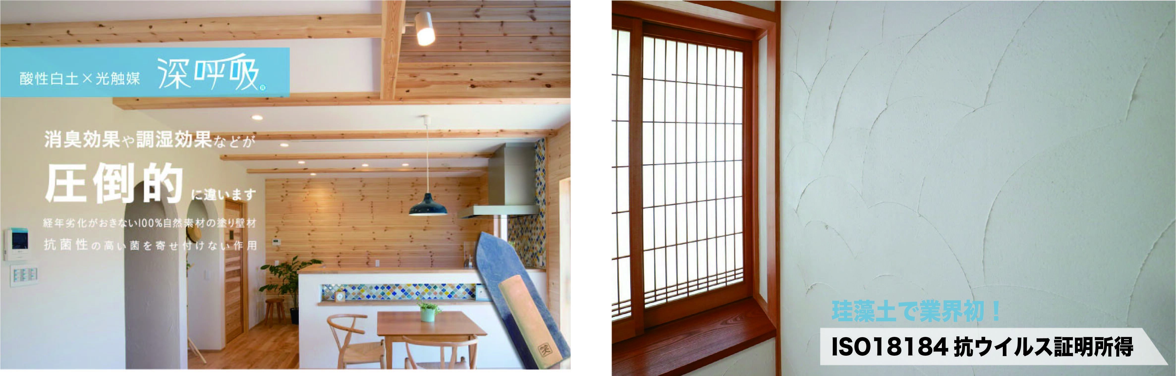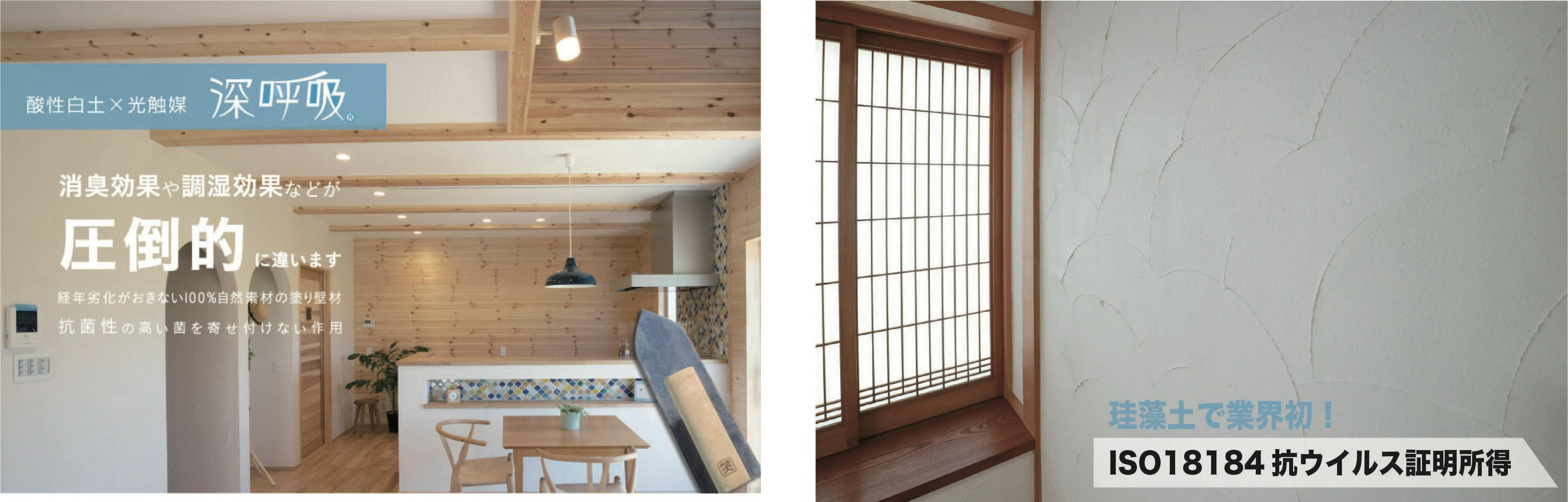 調湿・脱臭・有害物質の低減や空気清浄効果のある素材や建材を使用することで、健康を守る住まいづくりを提案しています。