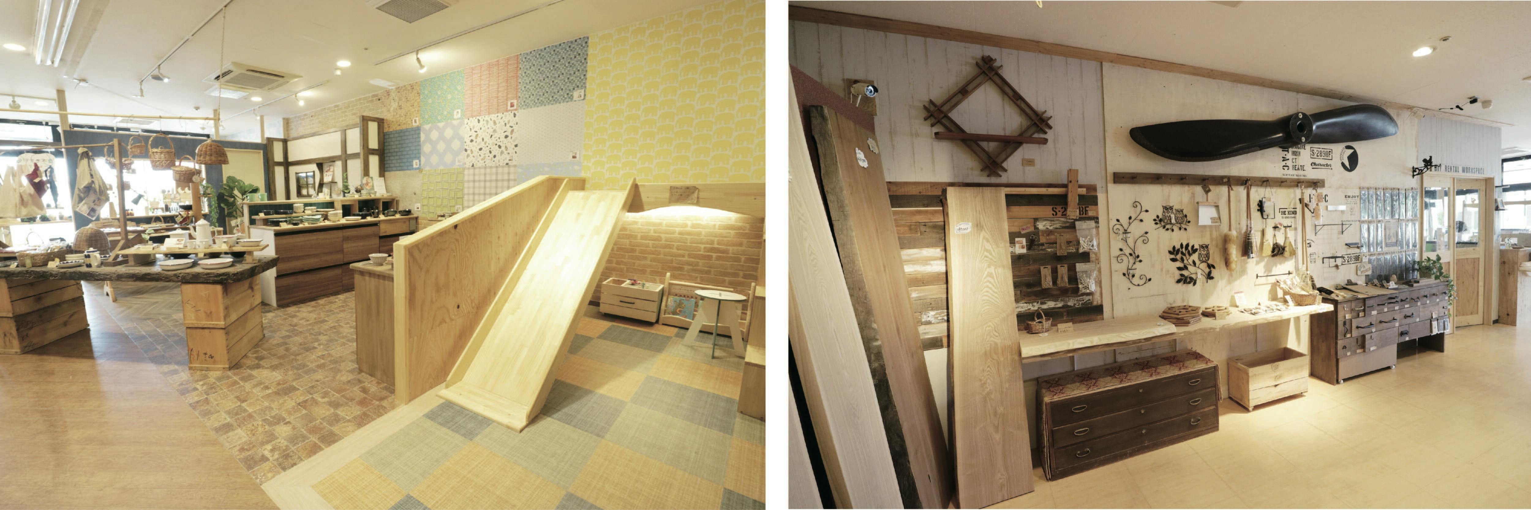 住まいの雑貨やDIY用品・木材、設備機器等の販売もあわせて行うようになる。