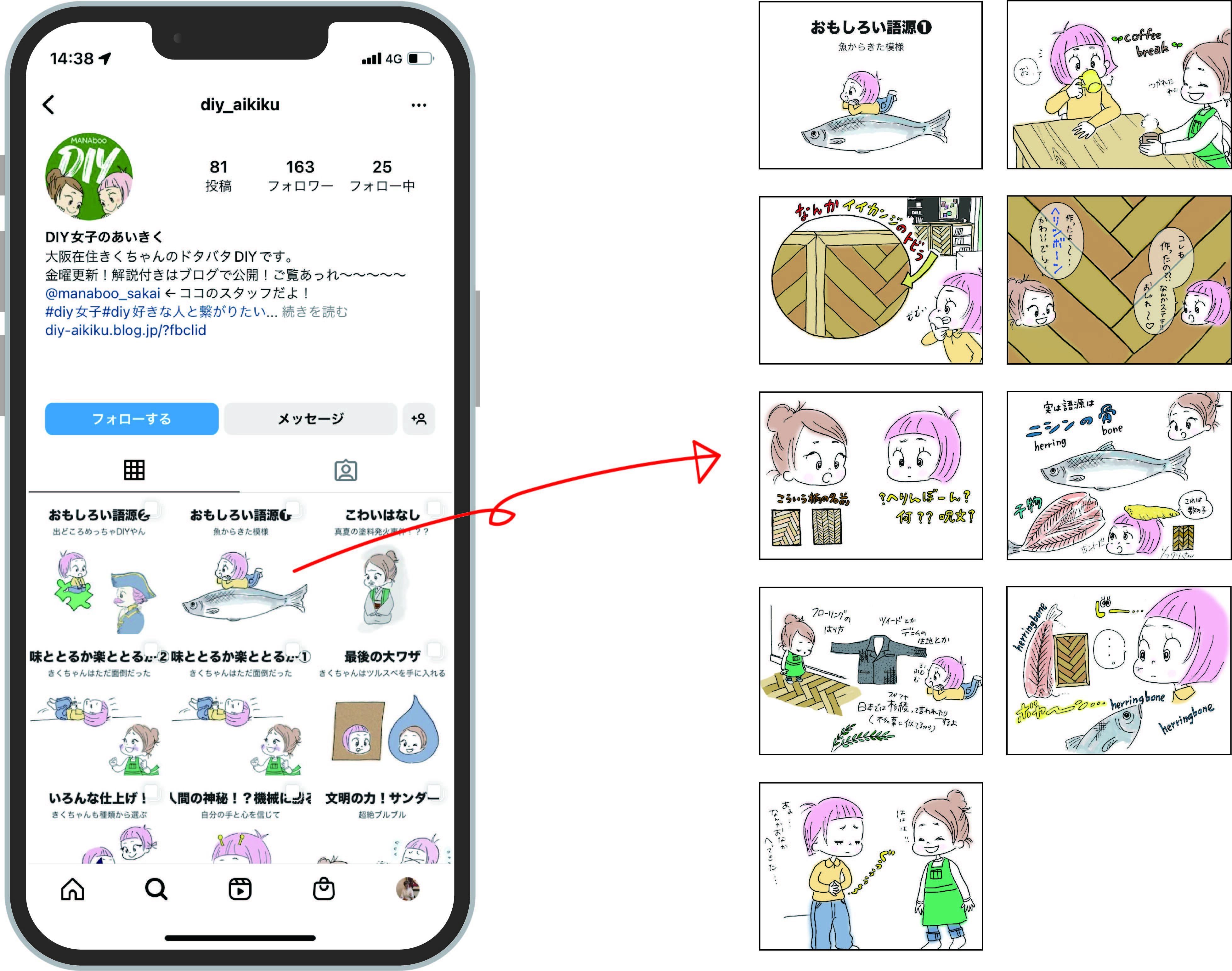 2021年4月 DIY漫画「あいちゃん教えてきくちゃんDIY」のブログ及びインスタグラムへの投稿開始。