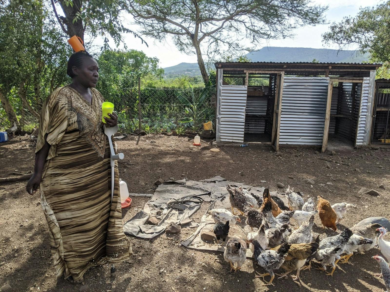 今回は生後2週間のひよこからスタートします。すでにいくつかのワクチンを摂取していているからです。さらに、温度管理が特に難しい生後数日を乗り越えており、育てやすいためです。受益者はえさと水を毎日朝と夕方に与え、鶏舎内を掃除します。ひよこは5か月ほどで売りに出せるまで成長し、卵も産むようになります。卵は売ることもできるし、羽化させてさらに数を増やして育てることもできます。
