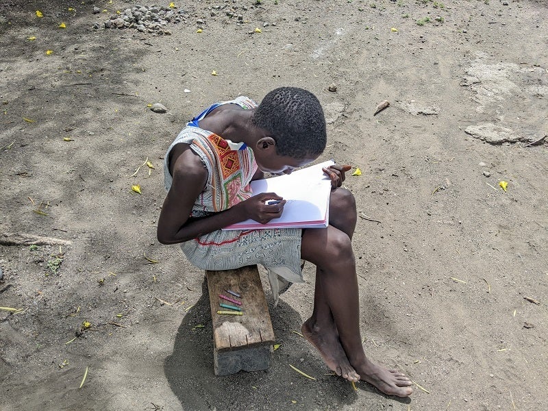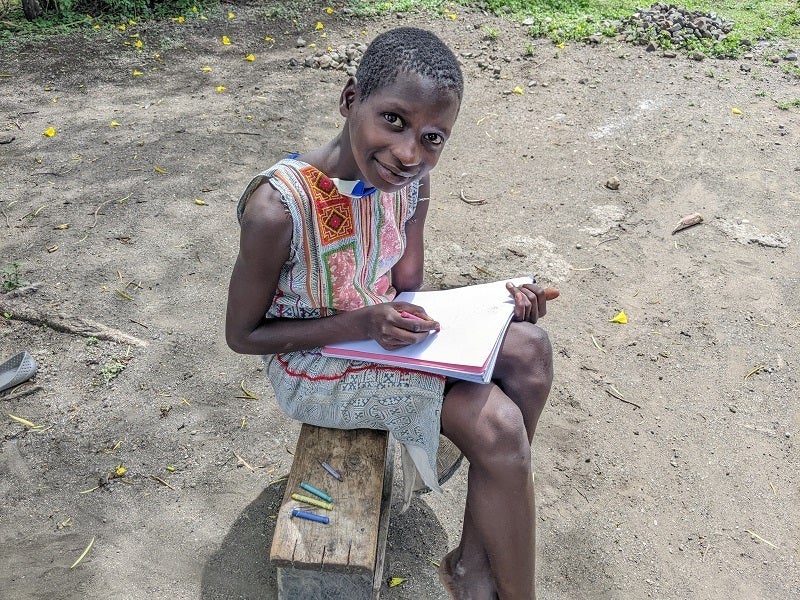 こちらの写真は、絵を描いてくれた一人、小学校6年生のヘレンさんの様子です。最近成績が上がっていて、一生懸命勉強しています。
