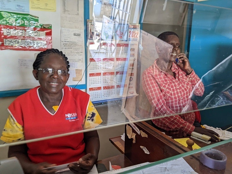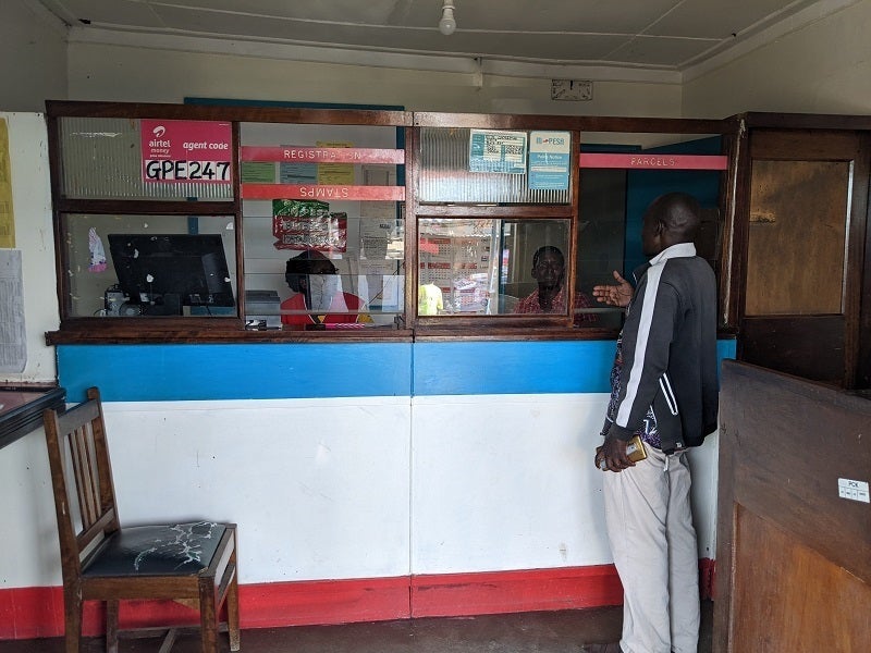 ビタの郵便局の窓口の様子はこちら。安全管理のためにガラス越しに手続きをします。