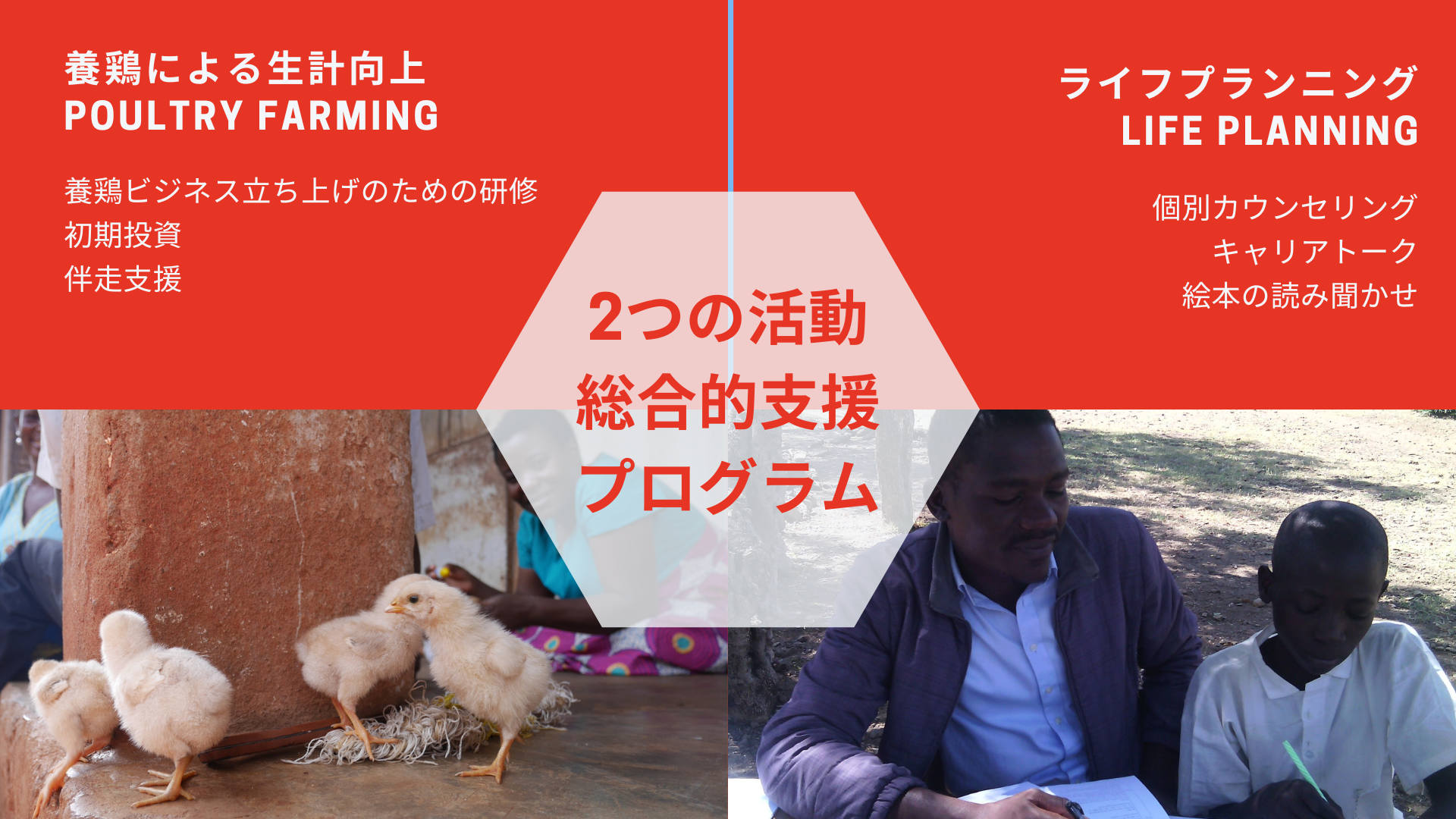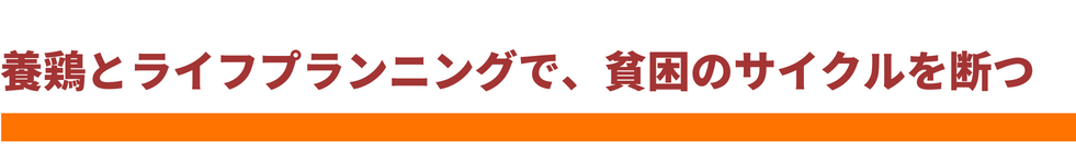 2023年4月までに、15家庭のシングルマザーを中心とした保護者および60名の子どもたちに、養鶏ビジネスによる保護者の生計向上支援と、子どもと保護者へのライフプランニング支援を届けます。