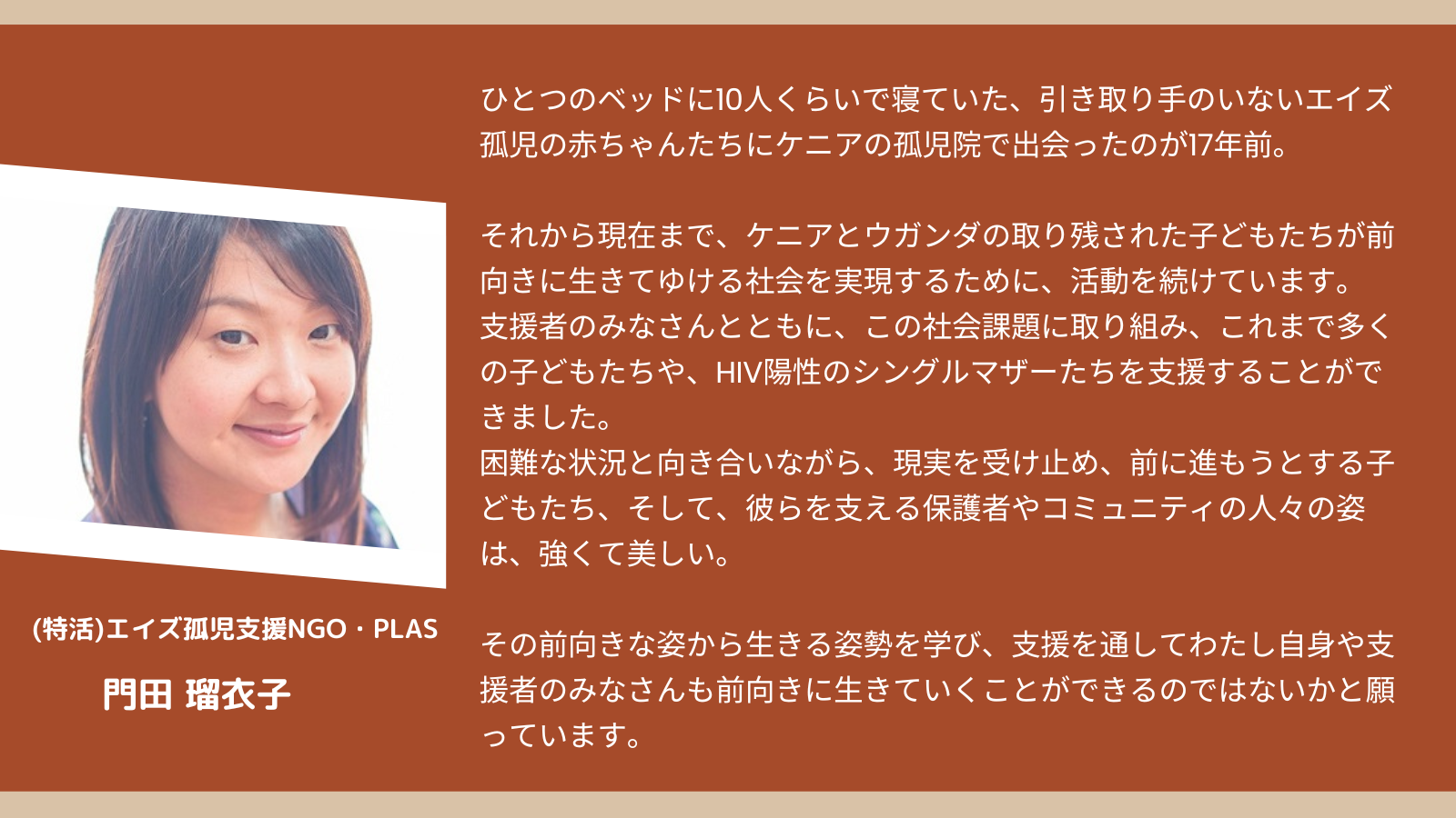 エイズ孤児支援NGO・PLASは、取り残された子どもたちが前向きに生きられる社会をめざしてウガンダとケニアで活動しています。設立から17年間で、685家庭、3,000名以上の子どもたちに支援を届け、27,000名にエイズ教育を届けてきました。