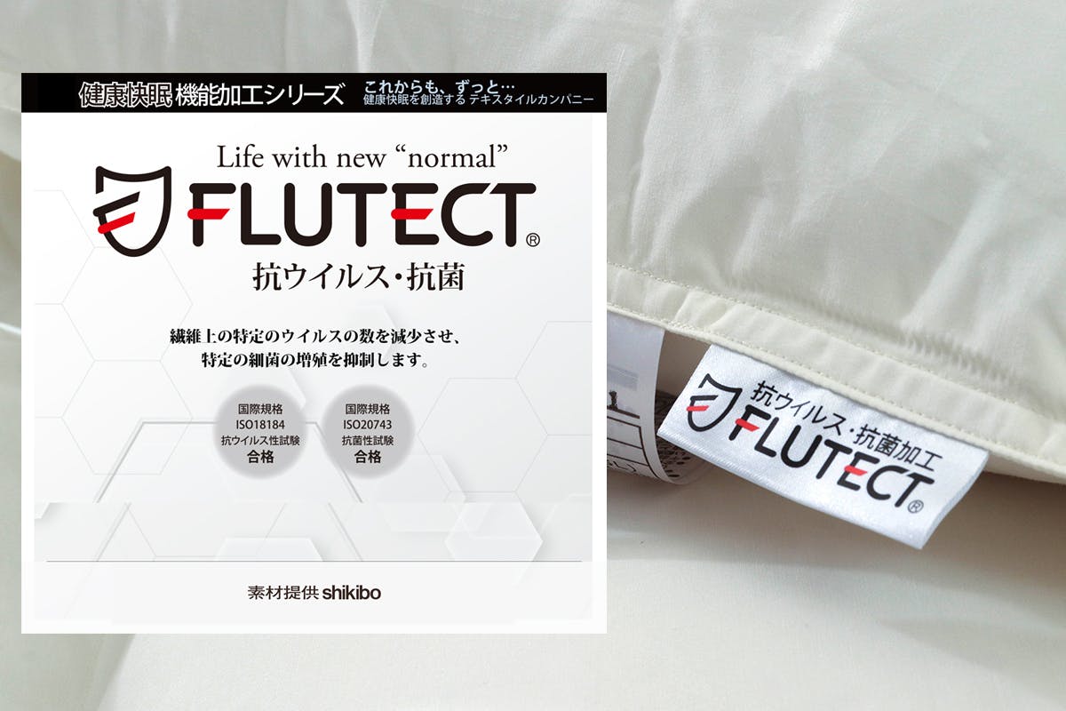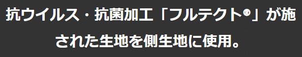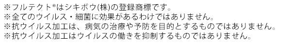 「フルテクト®」とは、シキボウ株式会社が開発した繊維上の特定のウイルスの数を減少させ、特定の細菌の増殖を抑制する加工技術です。