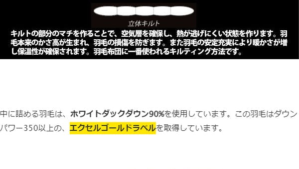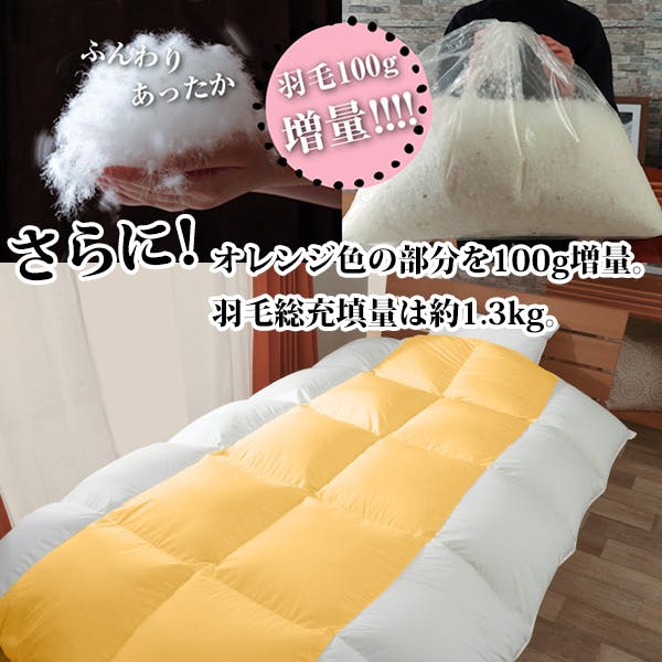 エクセルゴールドラベルの羽毛を約1.3kg使用。