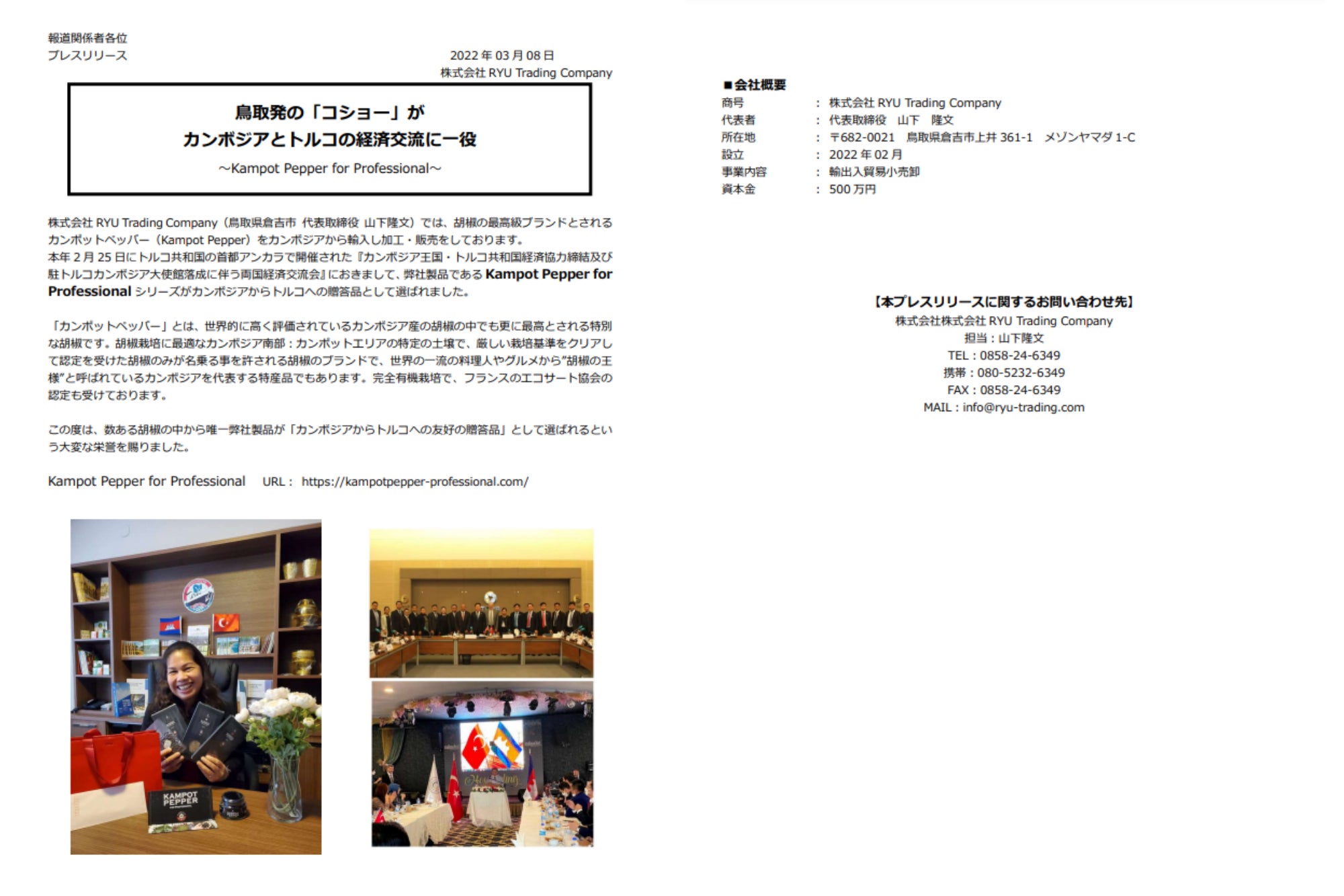 「カンボジアからトルコへの友好の贈答品」に選ばれた際のプレスリリース■作り方でもさまざまな工夫をこらしました!