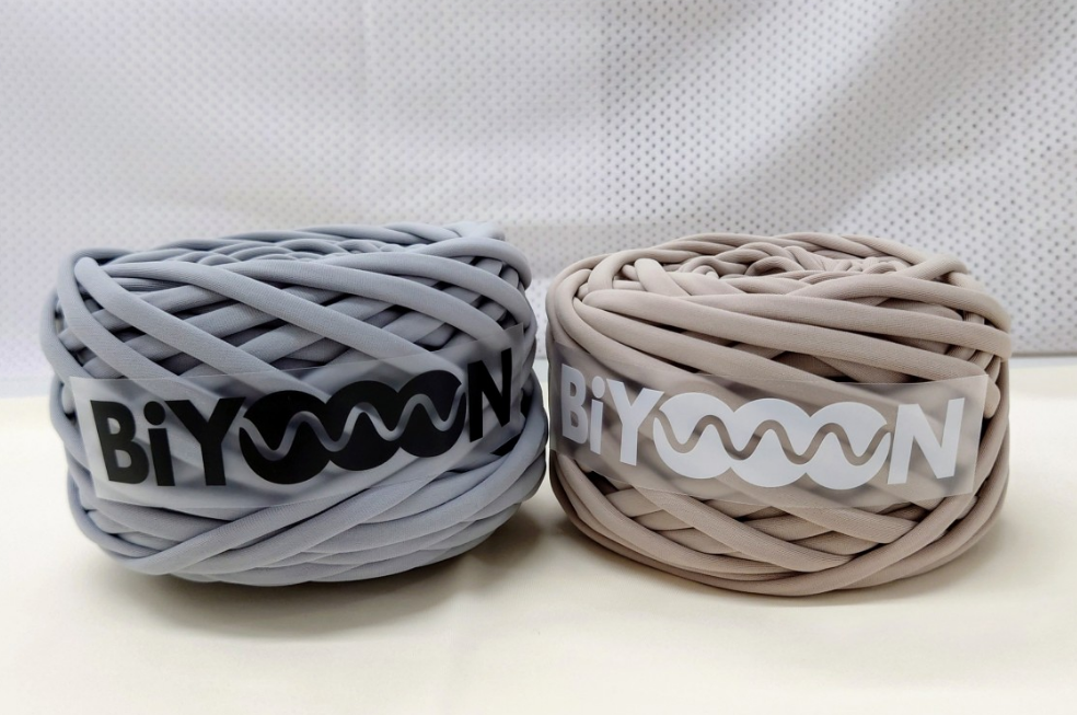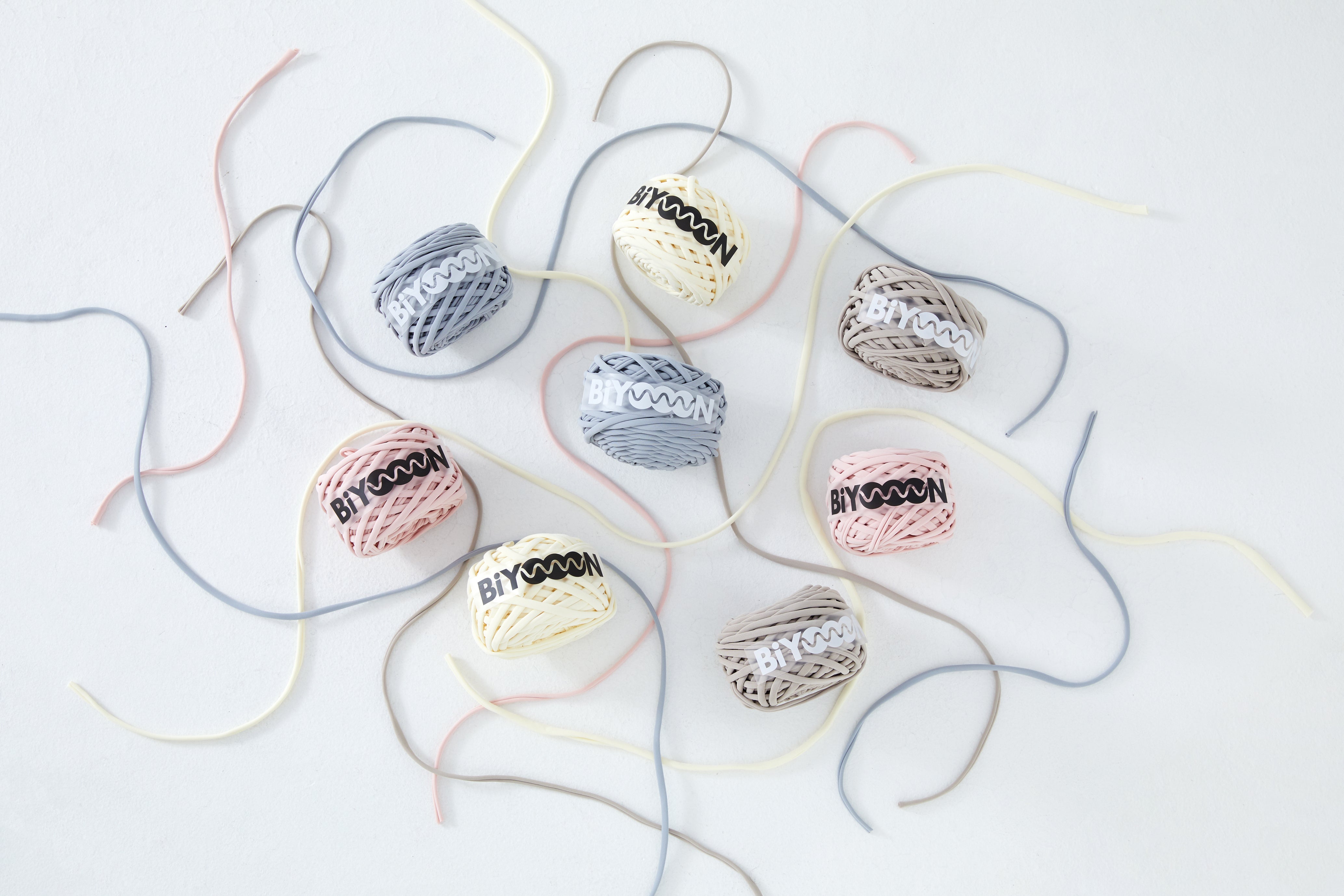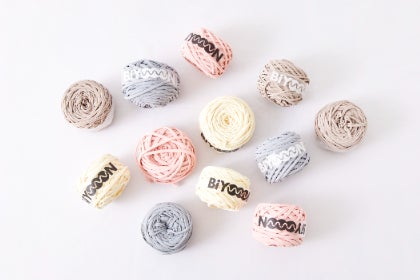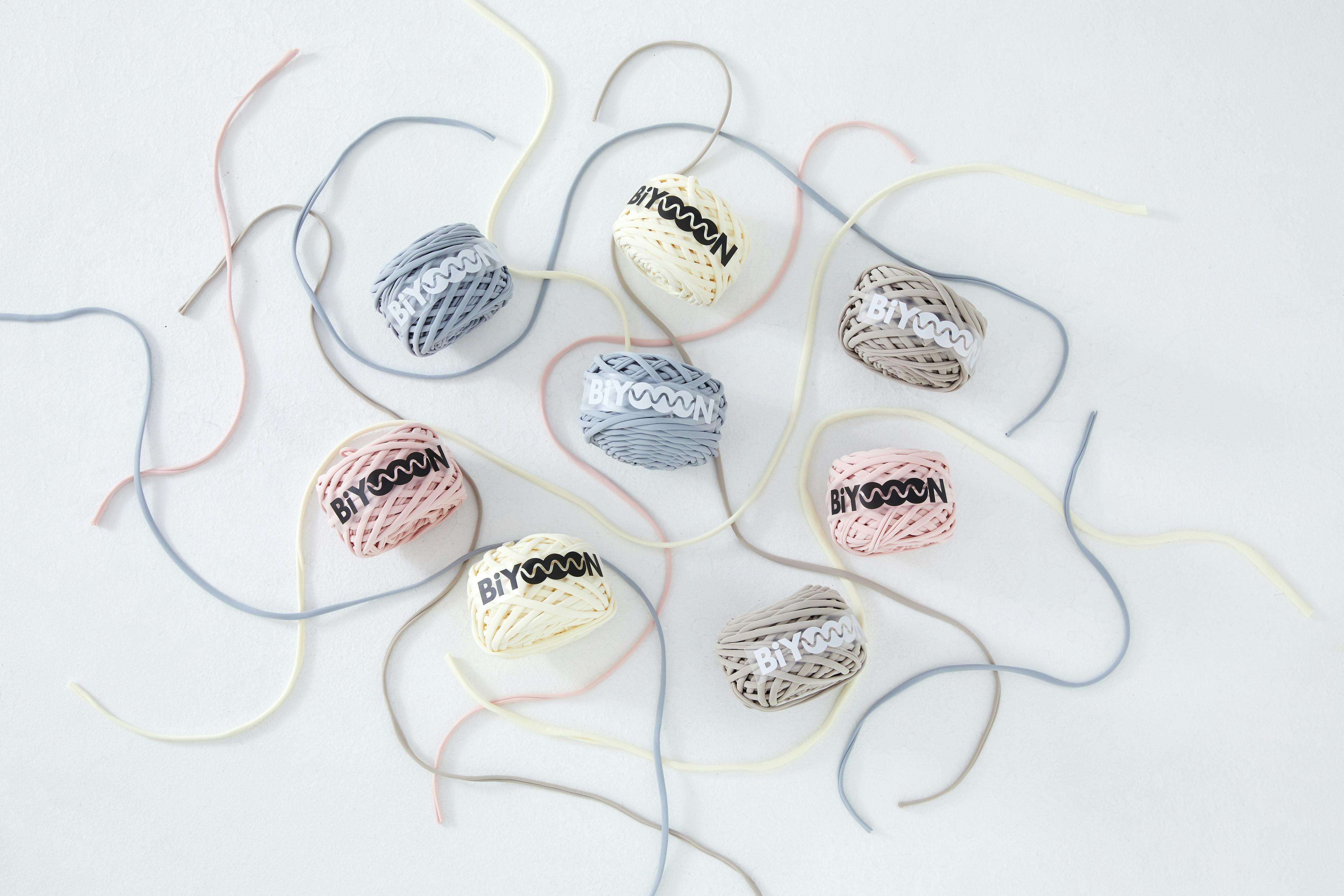 BiYOOONはその名の通り、ビヨ~ンと伸びる素材。元々、水着の残布を利用して作ったリサイクルヤーンです。編み物をされる方はもちろん、そうでない方も色々な用途でお使い頂けます!