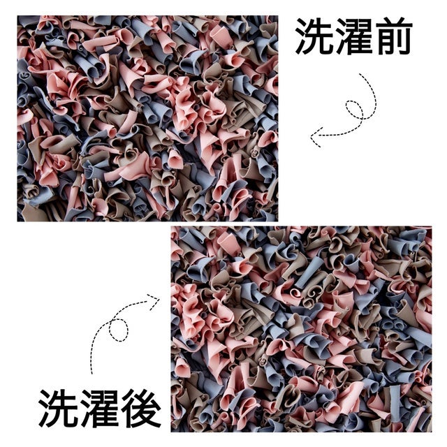洗濯すると平紐のようになりますが、引っ張ると元のBiYOOONの丸まった姿になります。
