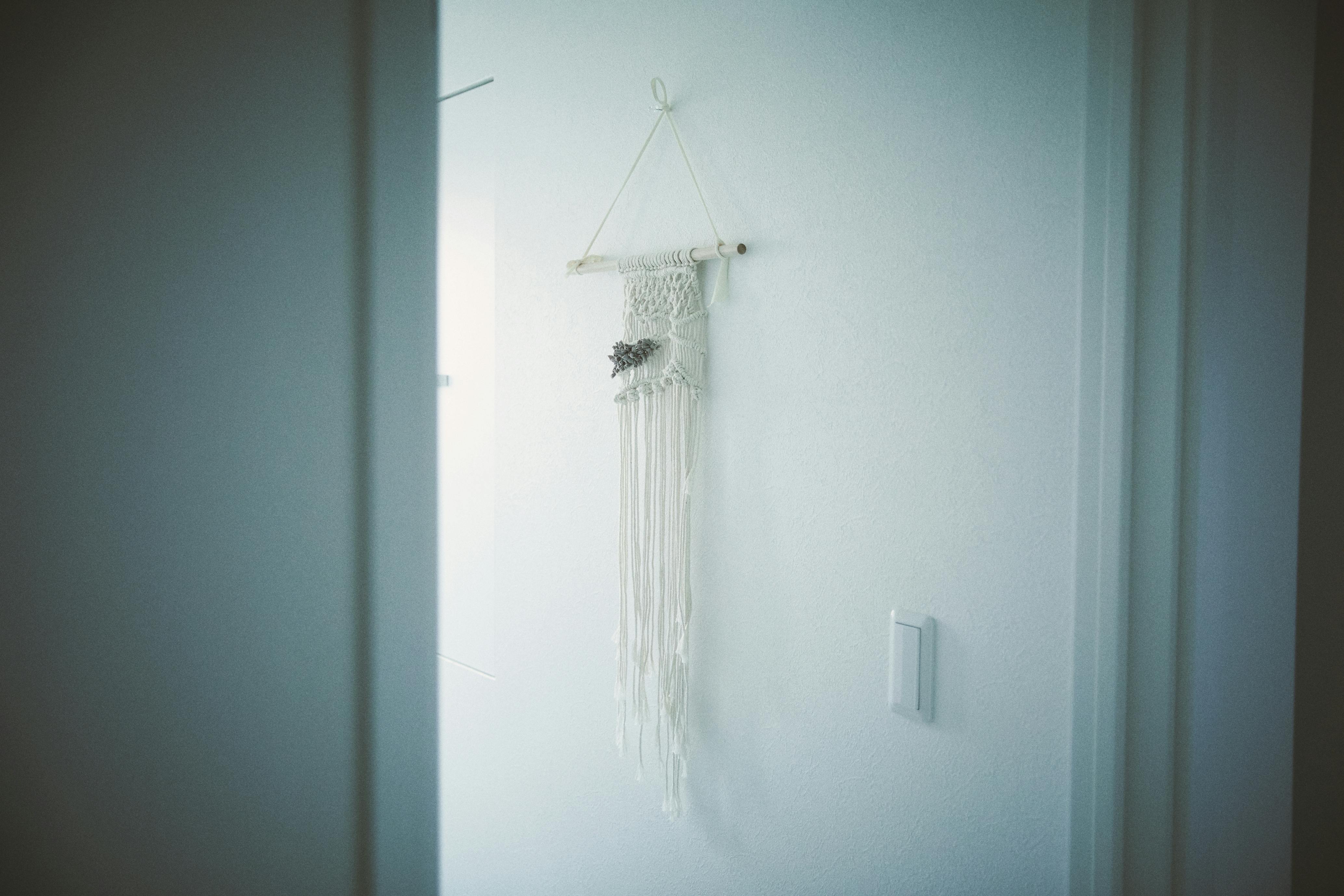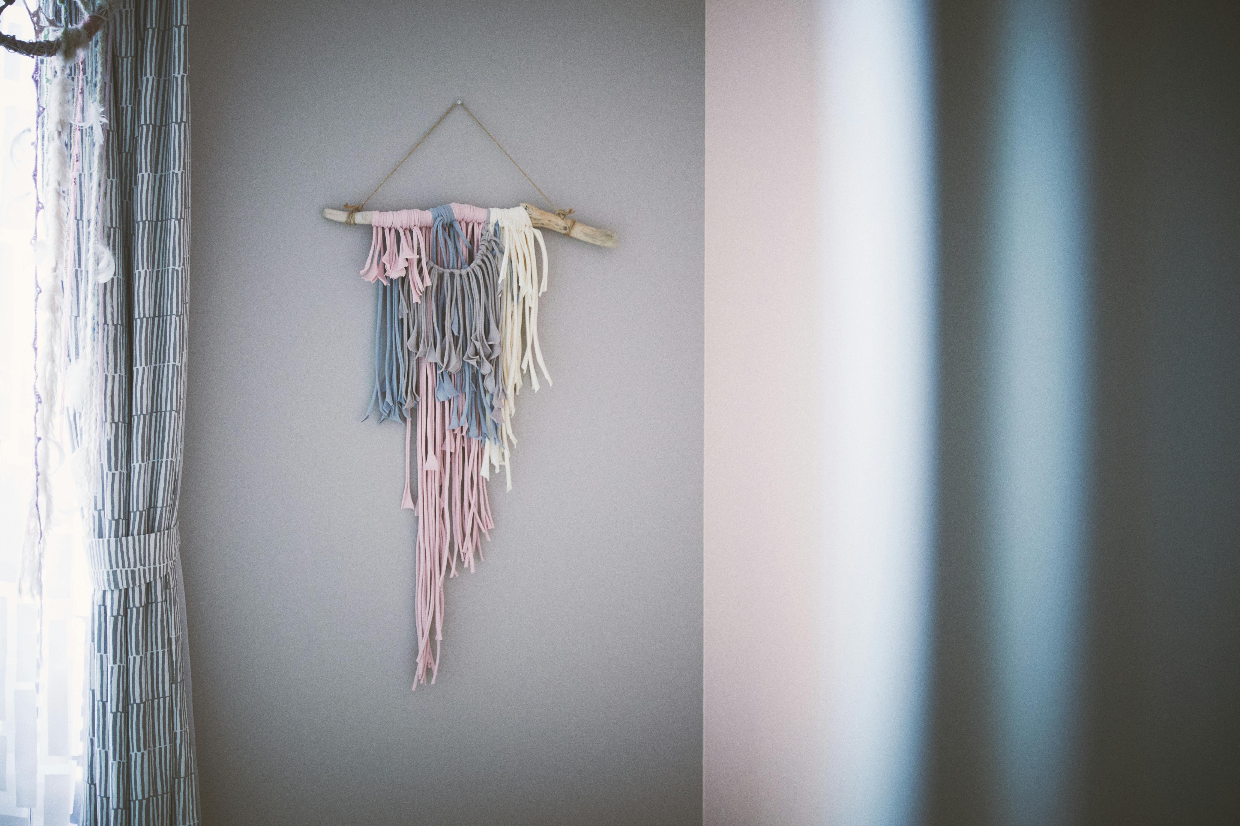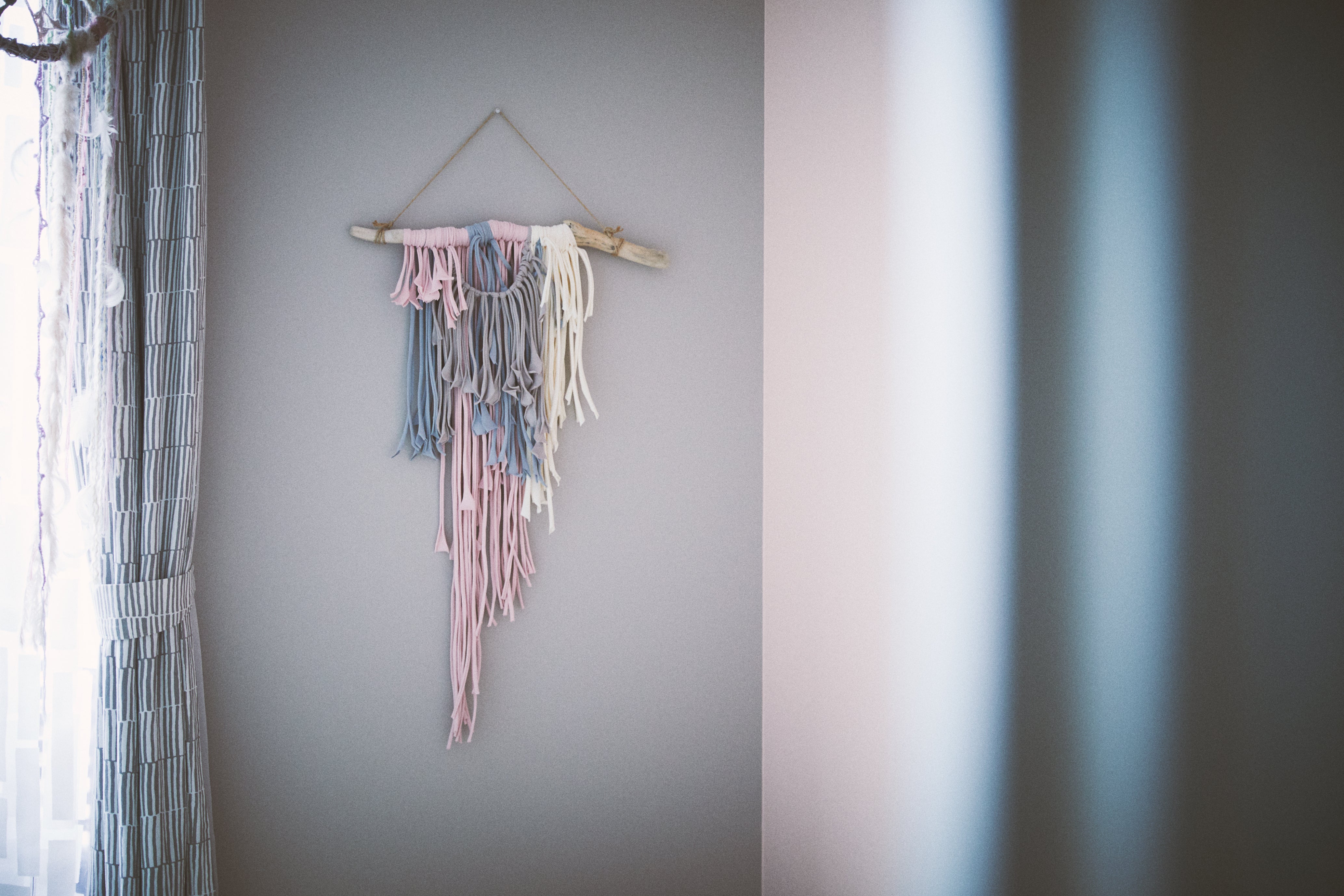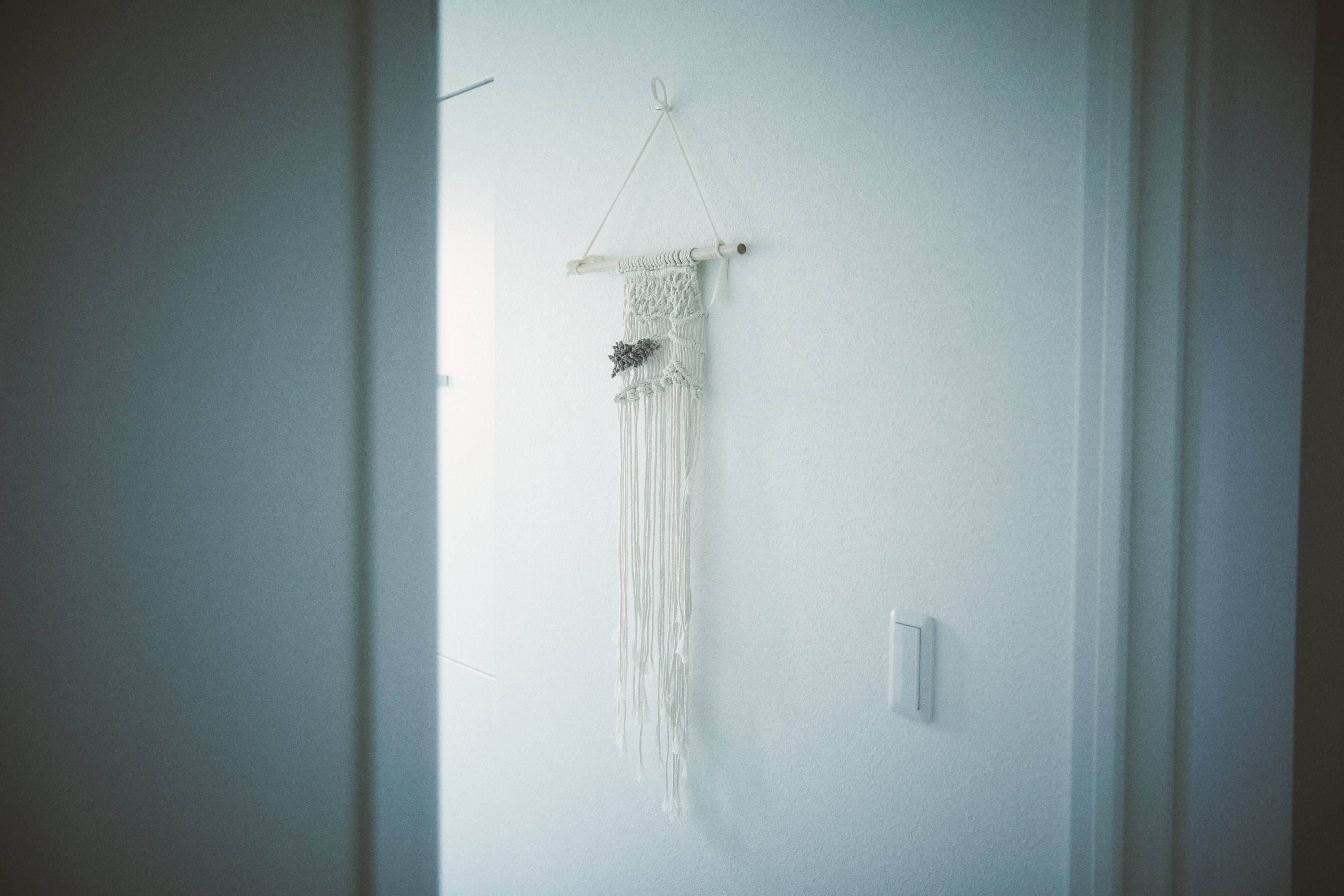 キャンプや釣り、スポーツをする際にも大活躍。モノを固定したり、干す際にも活用できるので、車に1玉入れておくととても便利です。汚れても洗濯して再利用も可能。また、希望の長さに切っても、残りのヤーンと結べば、元々つなぎ目があるヤーンな為、目立たずにお使い頂けます。下記は紐を束ねて垂らしたウォールデコレーション。
