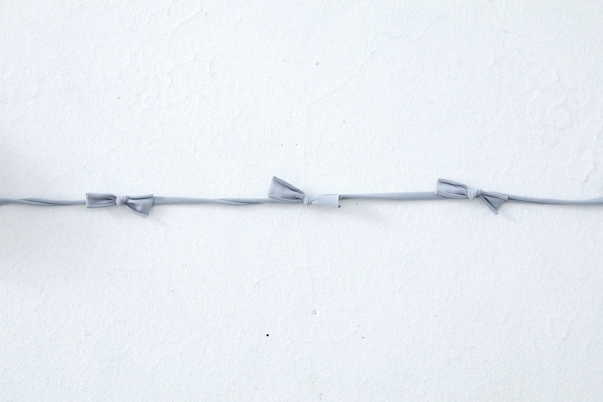 留める時は、リボン結びや、巻いた部分にくぐらせるだけでとまります。くるんと丸まった可愛い色は、見た目も良くとてもスッキリ。さらっとした手触りなので、紐絡みも少なく、好きな長さに切って手軽に使えます!