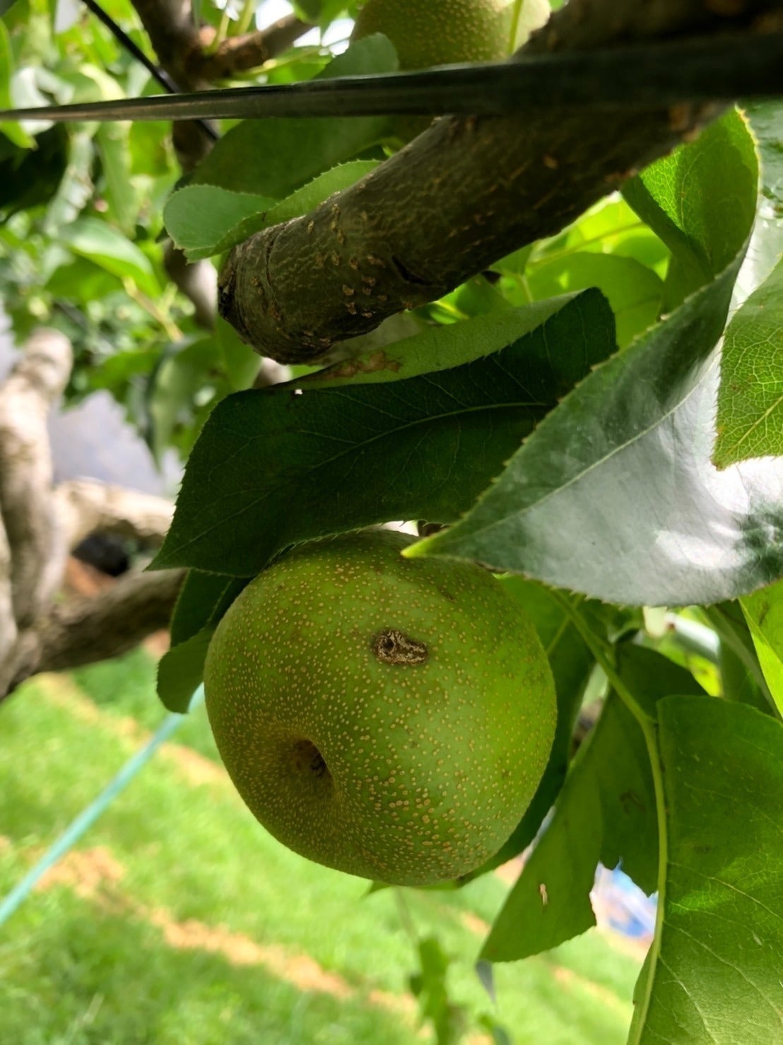 雹の被害を受けた梨
