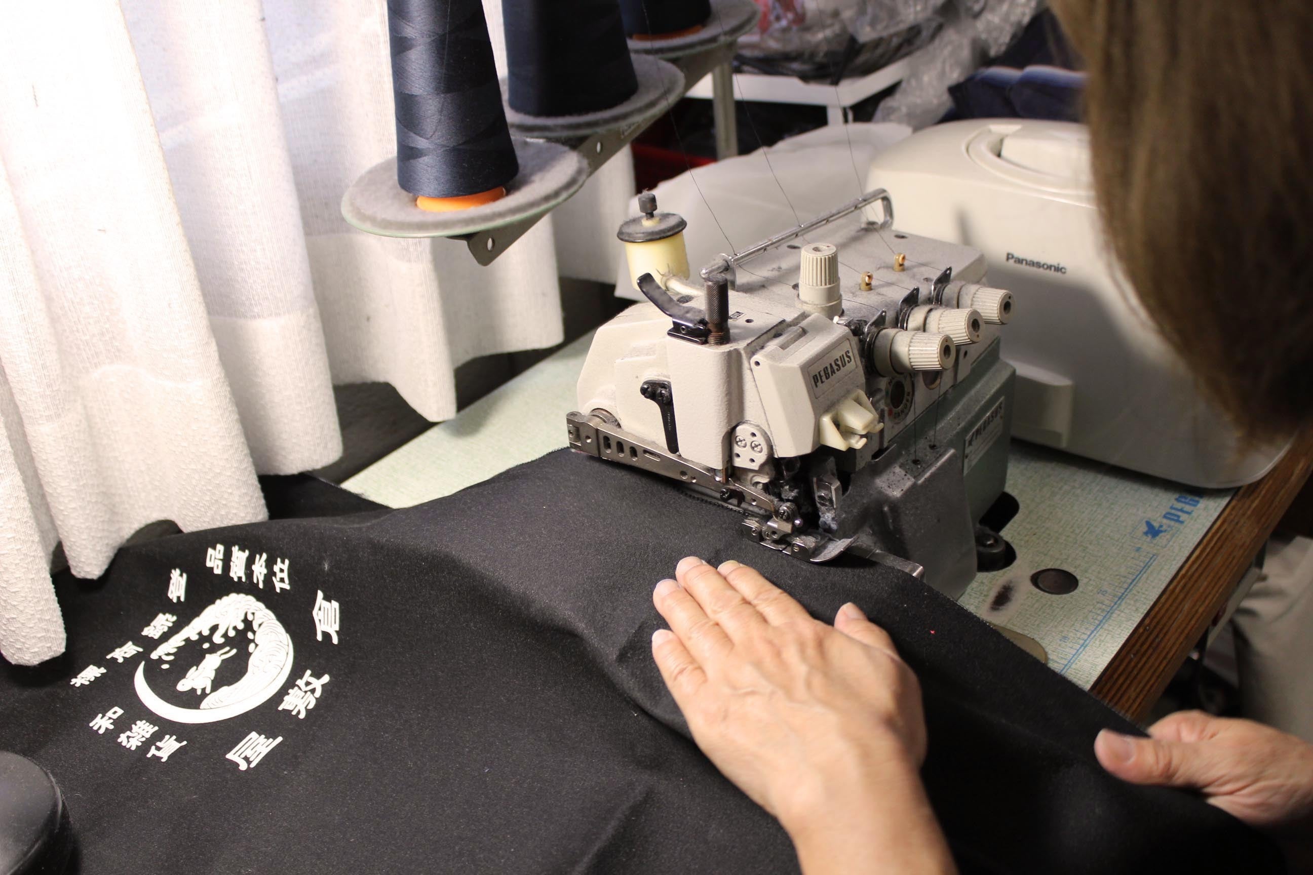 倉敷屋のデニム和雑貨は、裁断・印刷・縫製を全て自社で行い