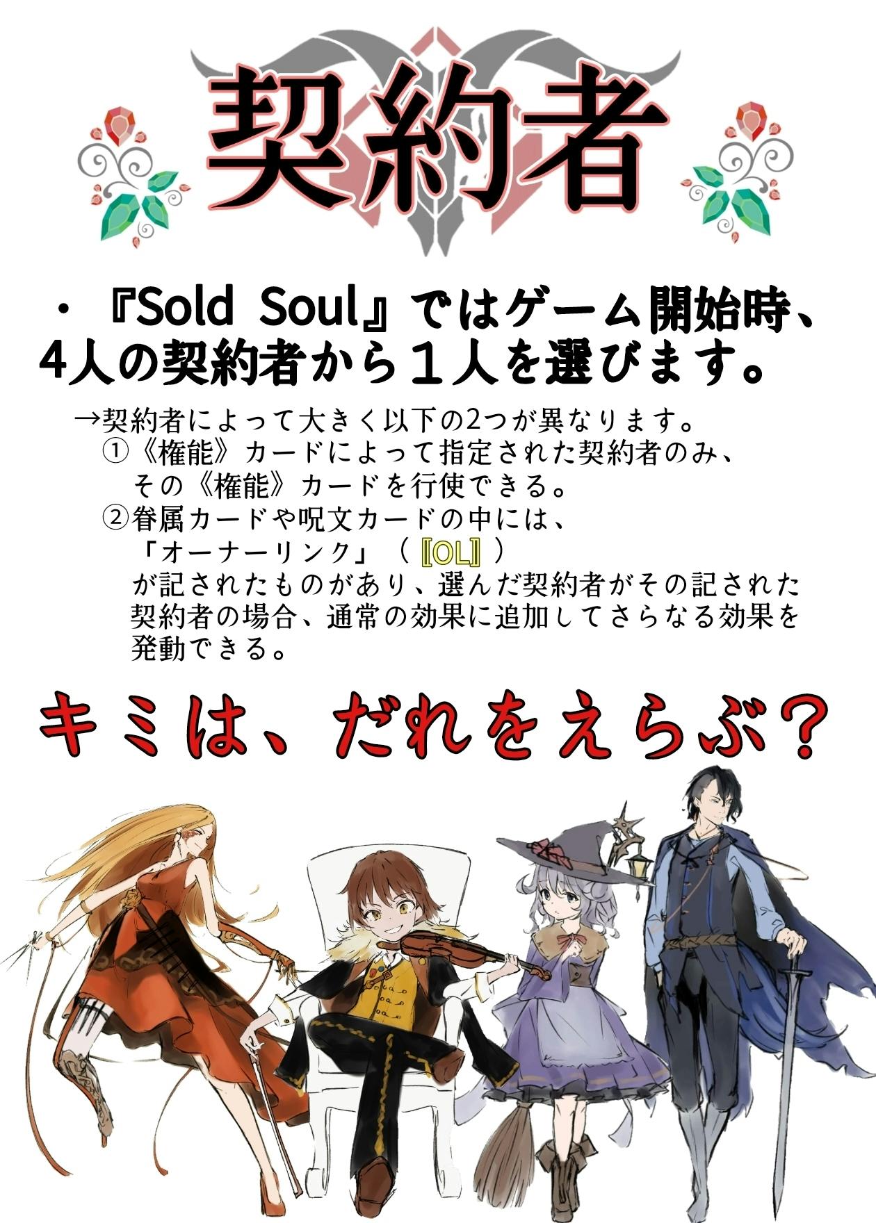 2箱セットの場合お得にご購入できる他、『Sold Soul』がより楽しく遊べるようになります!(同じ契約者で対戦できる、1種類の《権能》カードを4枚デッキに入れられる、など。)
