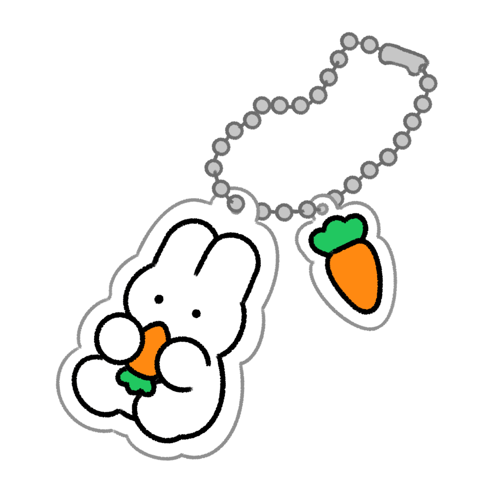 アクリル部分サイズ:(うさぎちゃん)ヨコ3cm×タテ5cm、(にんじん)ヨコ1cm×タテ2cm 程度