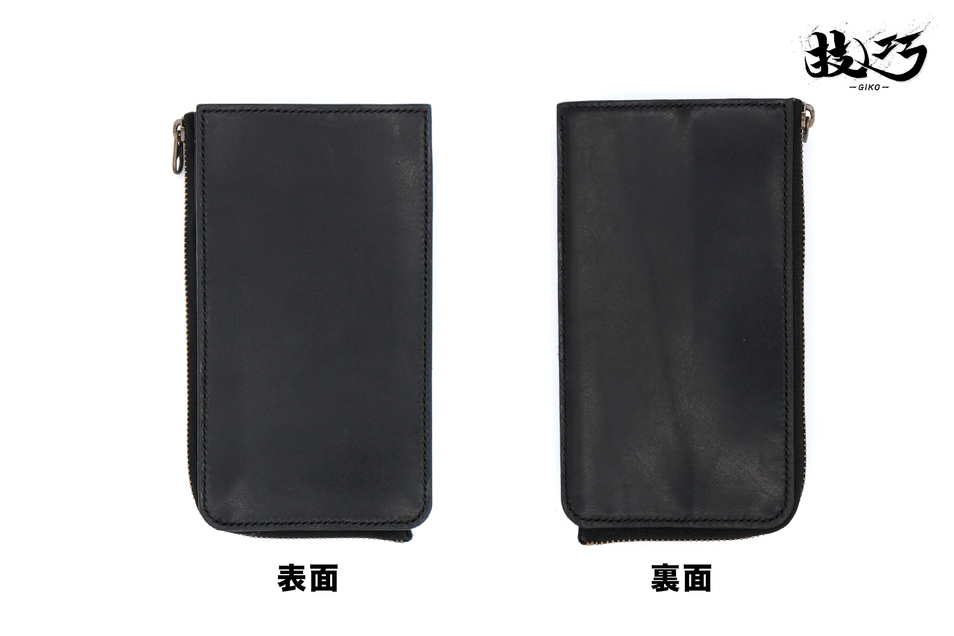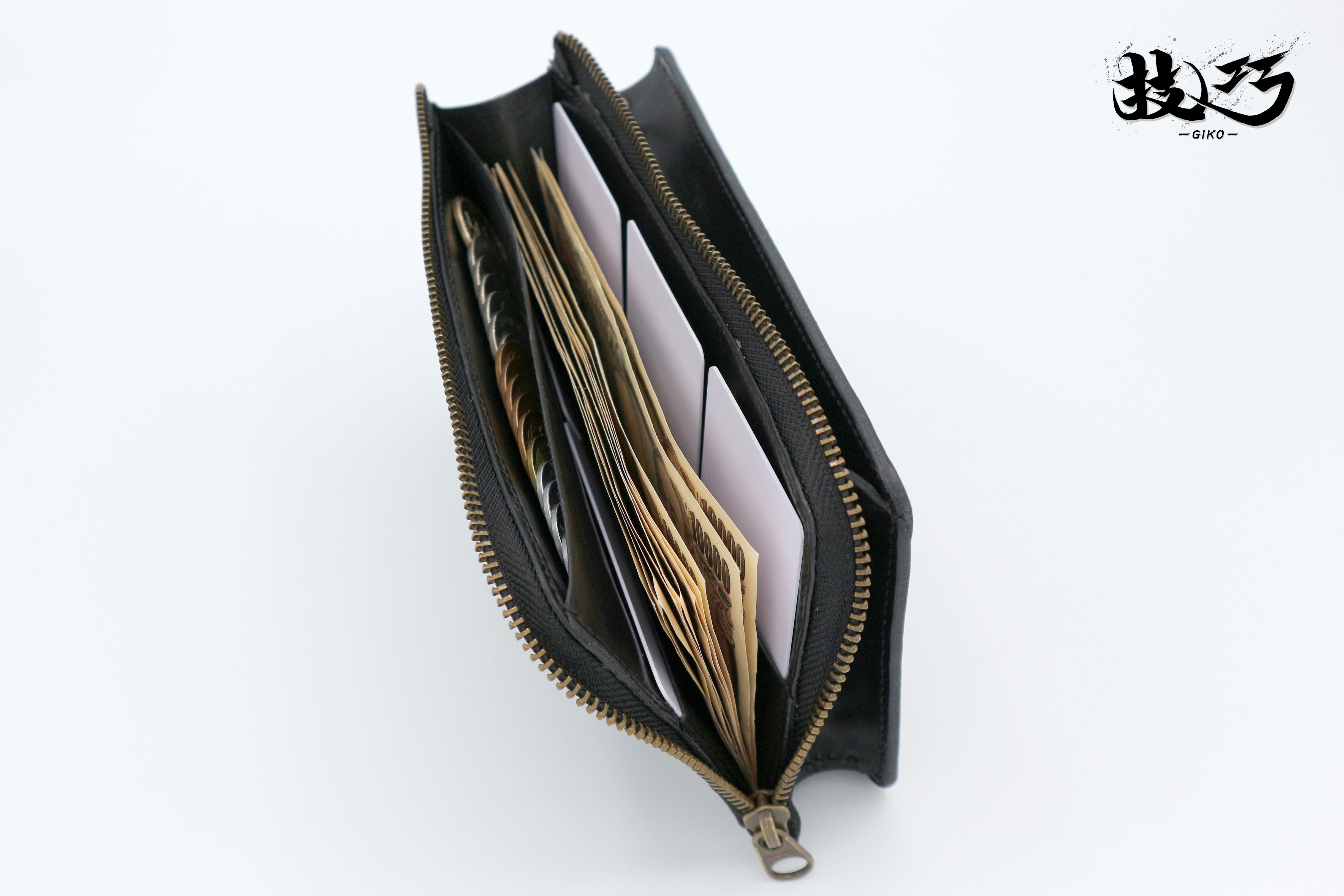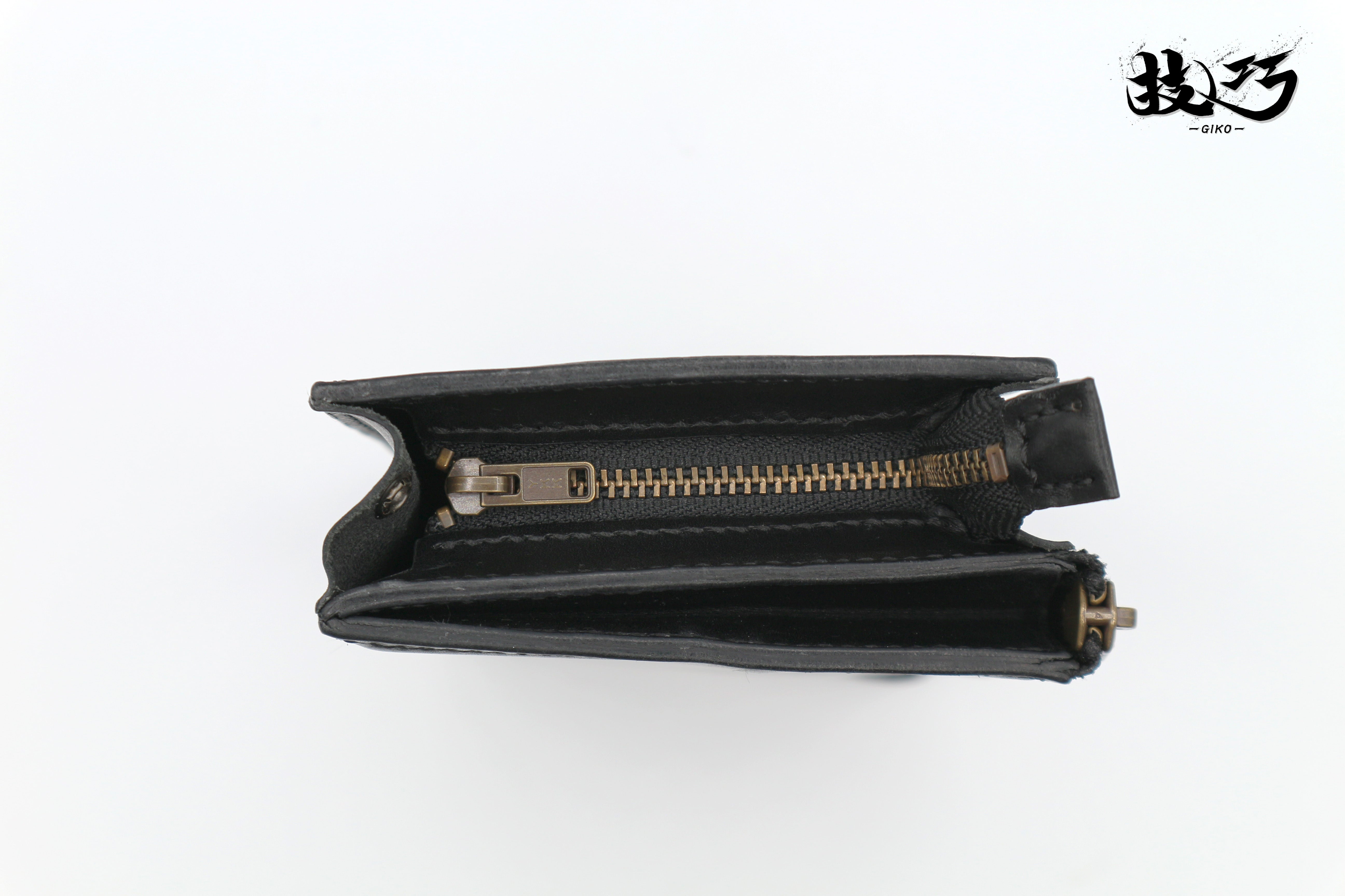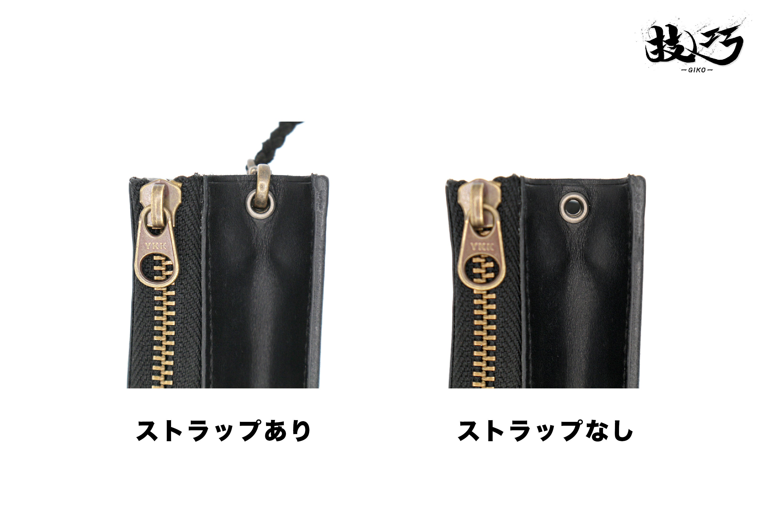 財布として使うときに金具の存在が大きいと、財布としての見た目を損ねるので小さいリングを取付けるだけにして、スタイリッシュに仕上げました。