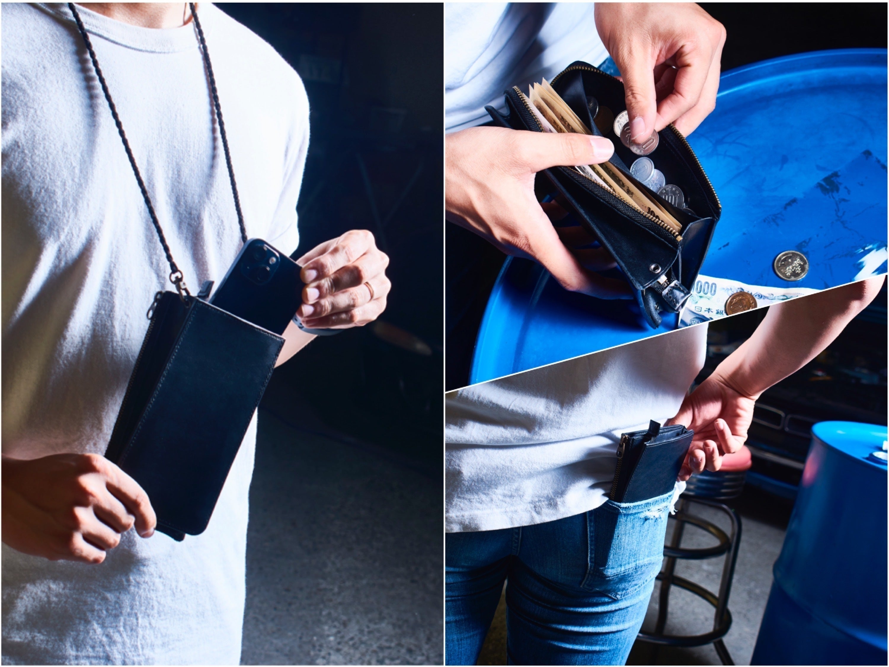 技巧が作り上げた「ミニマルポシェット」はその欠点を解消した、使いやすくスタイリッシュな男女問わず服装を選ばないデザインへと仕上がりました。