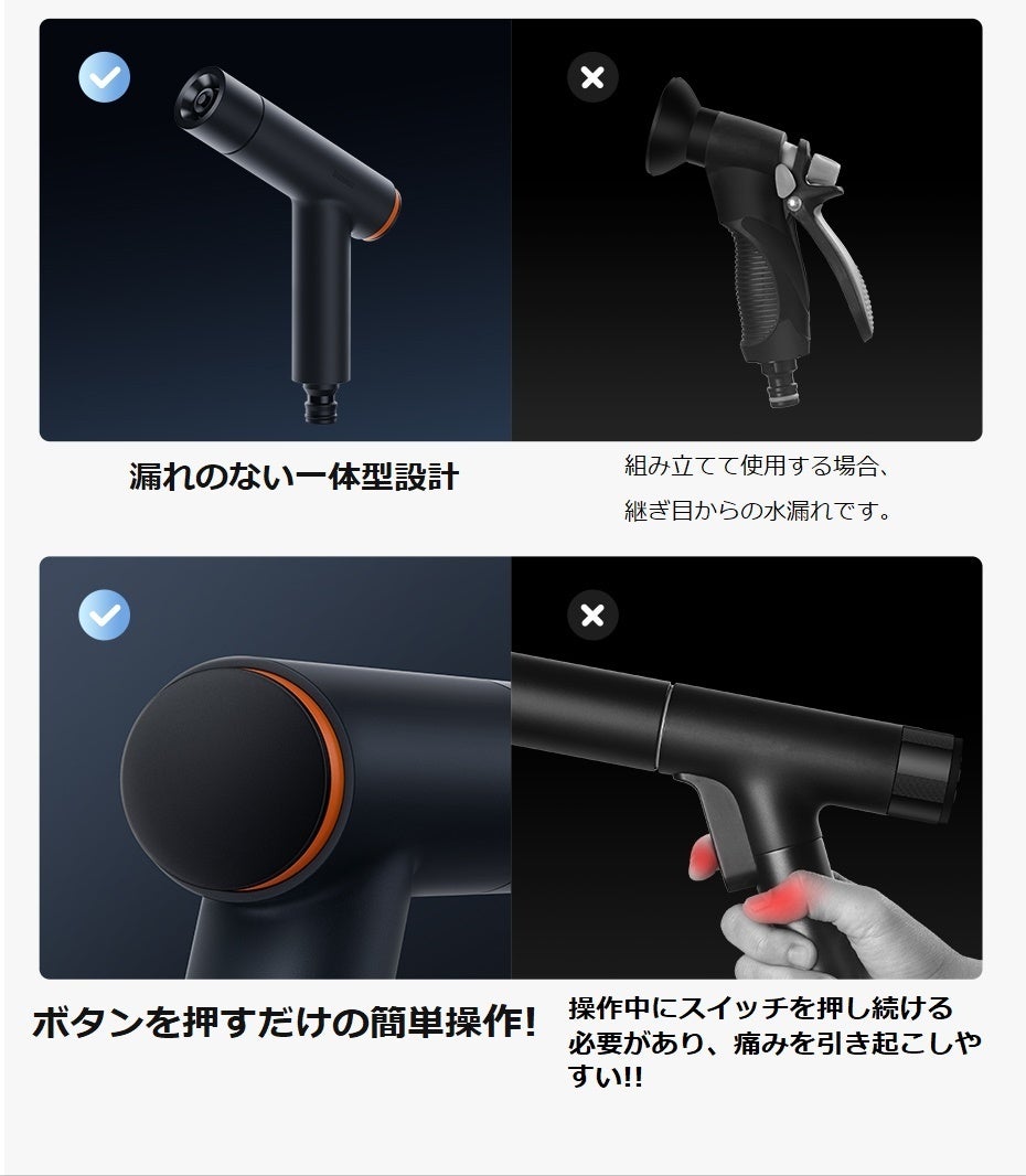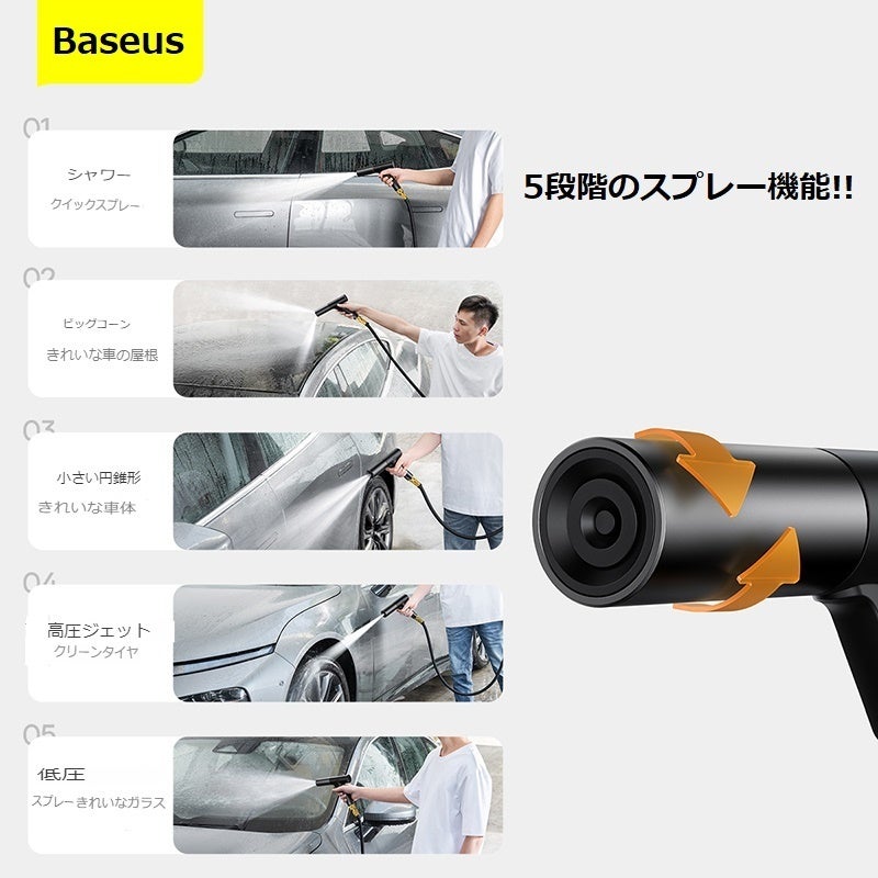 ●大型の高圧洗浄機は複雑な組み立てと操作方法の理解が必要ですが、「Baseus」は、ワンタッチ接続だけで