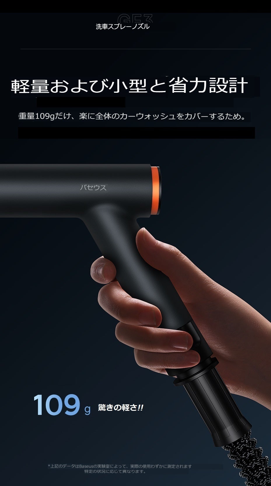 ●わずか、109gな超軽量な本体、長時間の洗浄作業をしても腕に負担がかかりません。