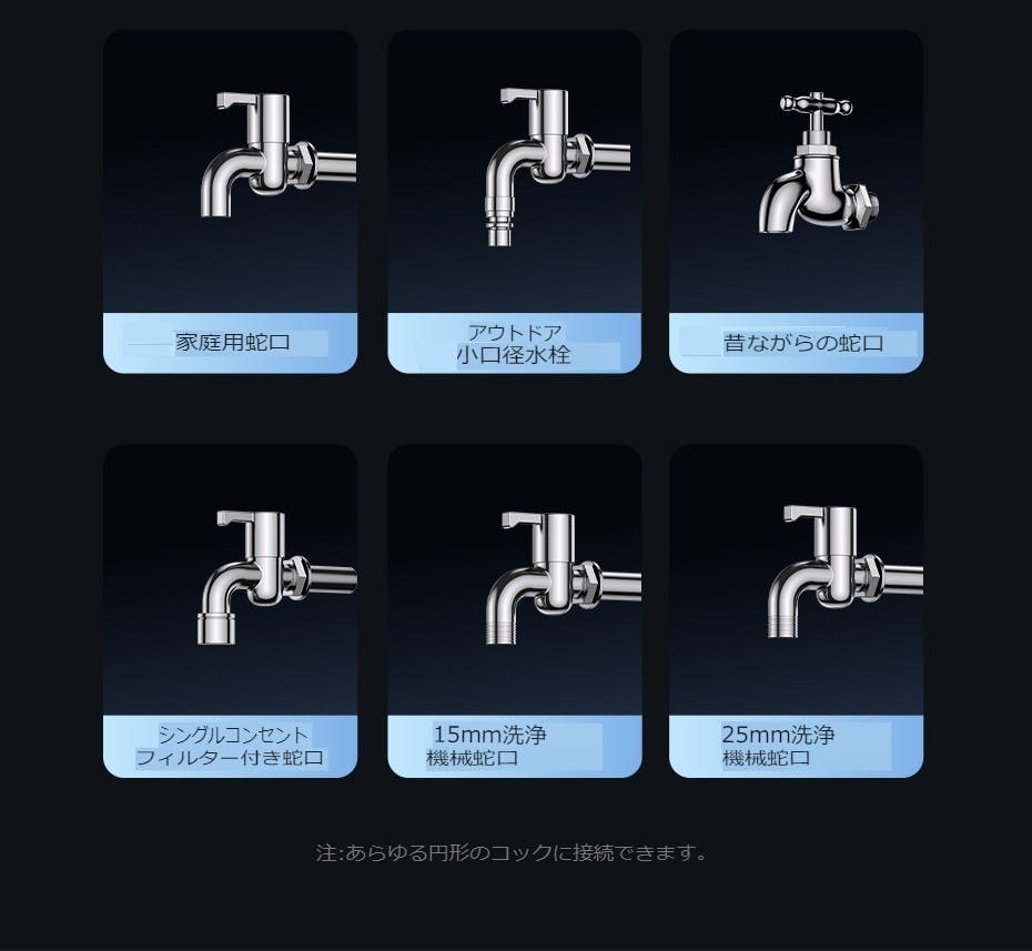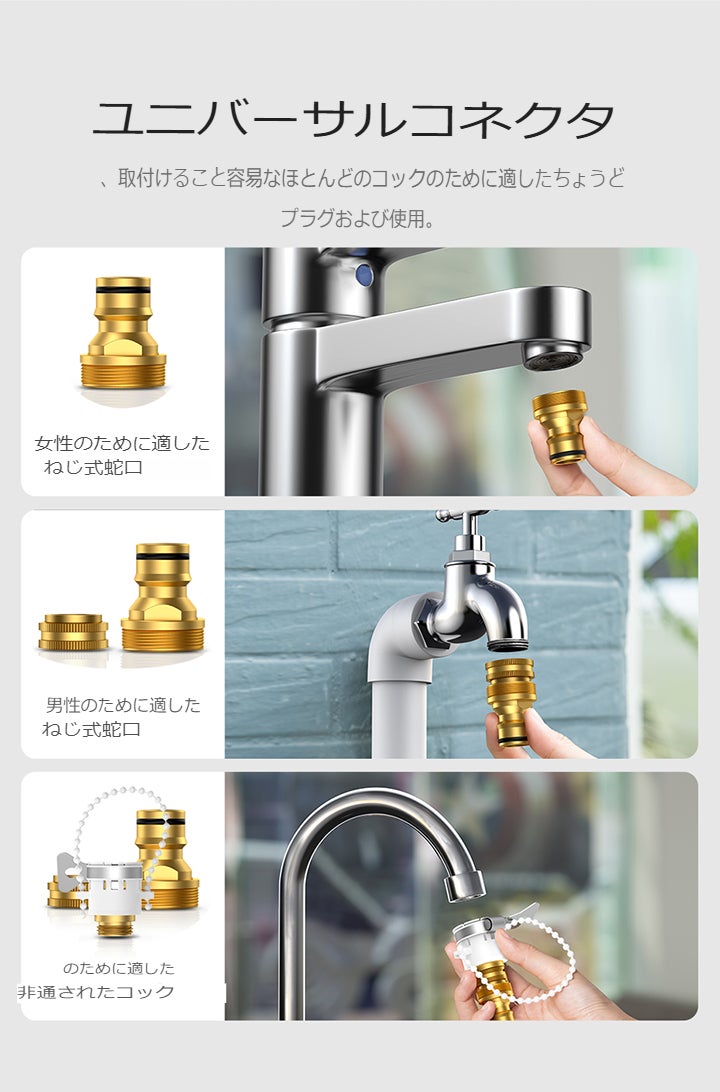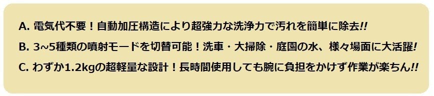 *電源不要 *3倍に伸びるホース *超軽量 *超小型 *最大噴射約12m *片手操作可能 *多種類蛇口対応!