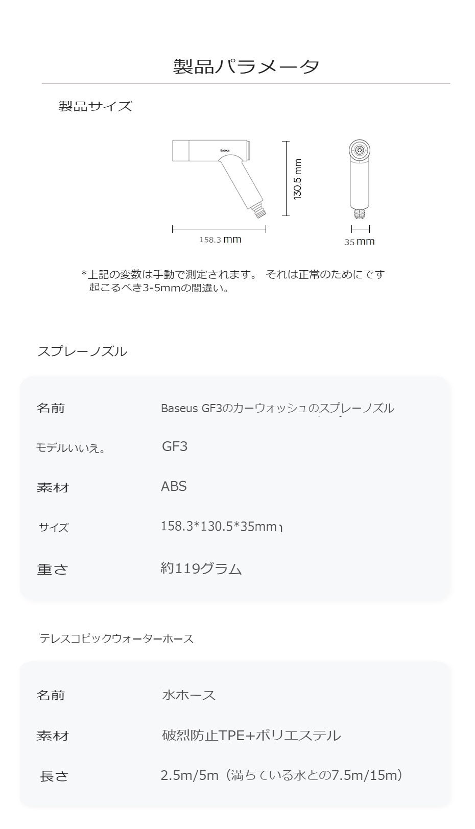 ・GF3ノズルの重量:119g