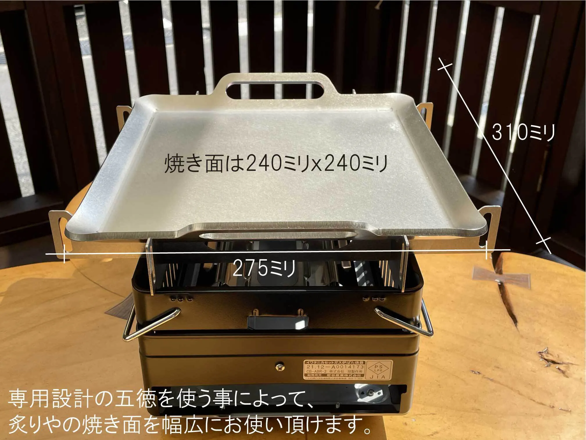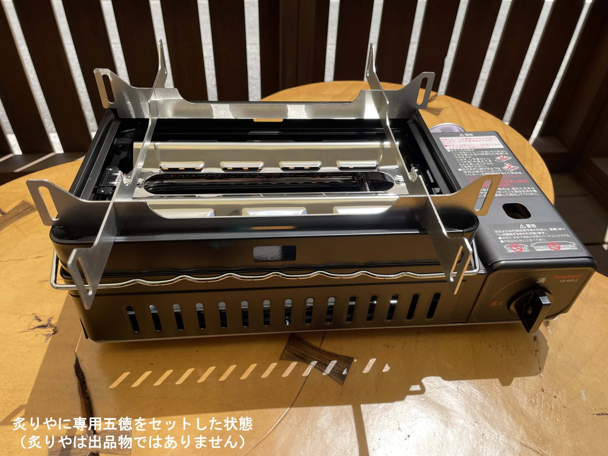 専用の五徳を使用する事で、大きなグリルプレートを炙りやに設置する事が可能となりました。