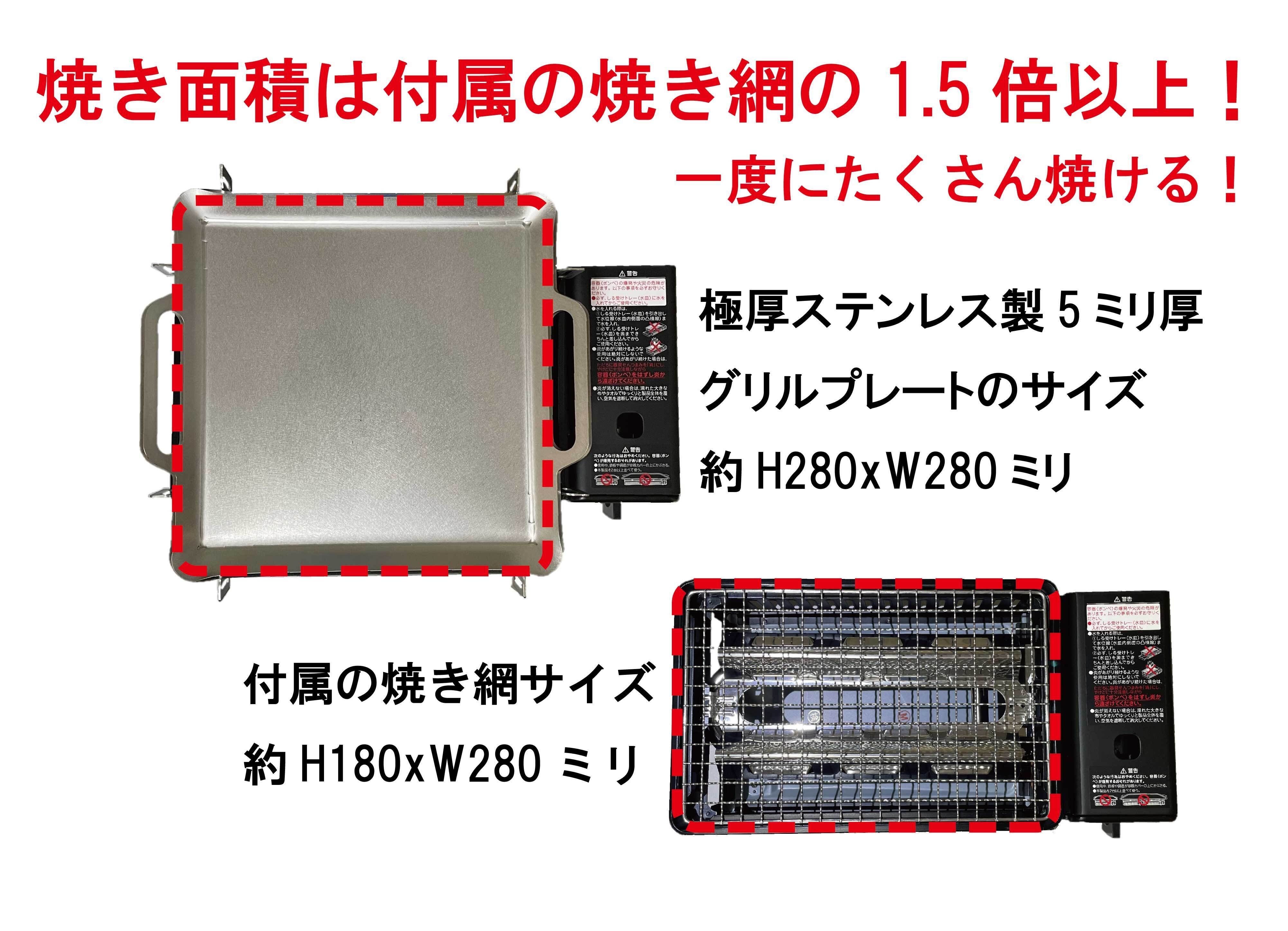 当製品の焼き面サイズは280x280ミリと1.5倍以上のサイズとなります。