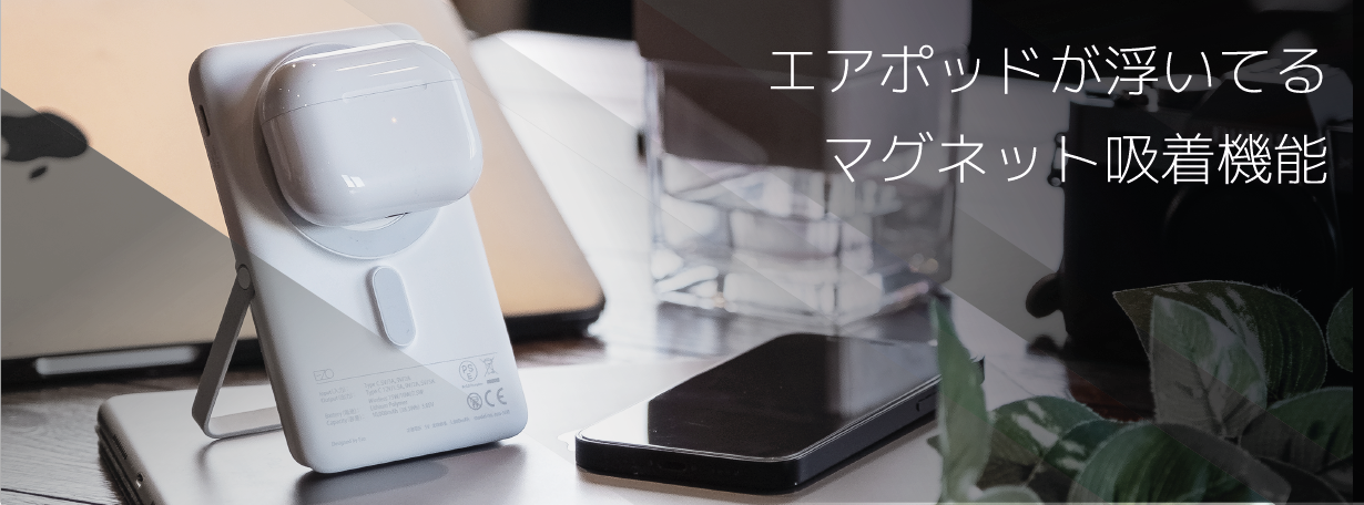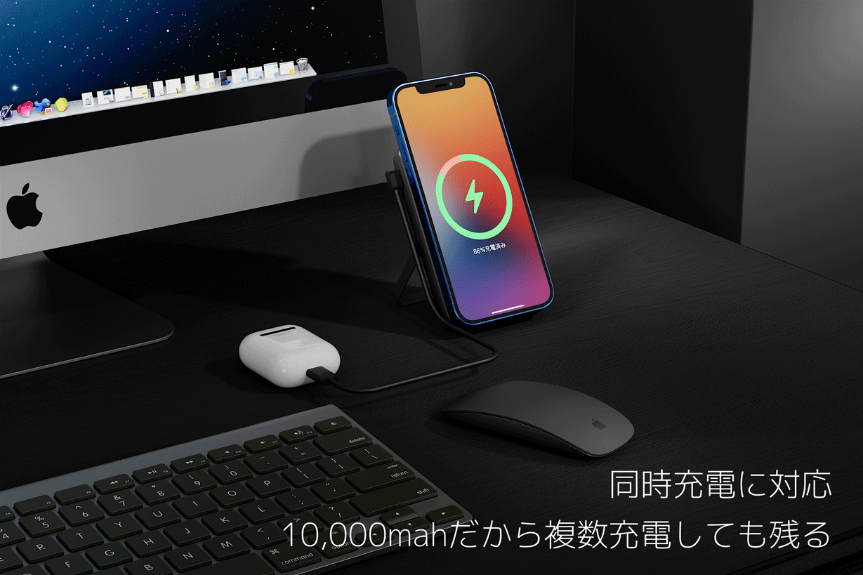 もちろんスマホだけでなくAirPodsなどにも使えるので「外出中はスマホに」「自宅ではスマホ以外の電子機器のワイヤレス充電に」といったような使い方もできるんですね。