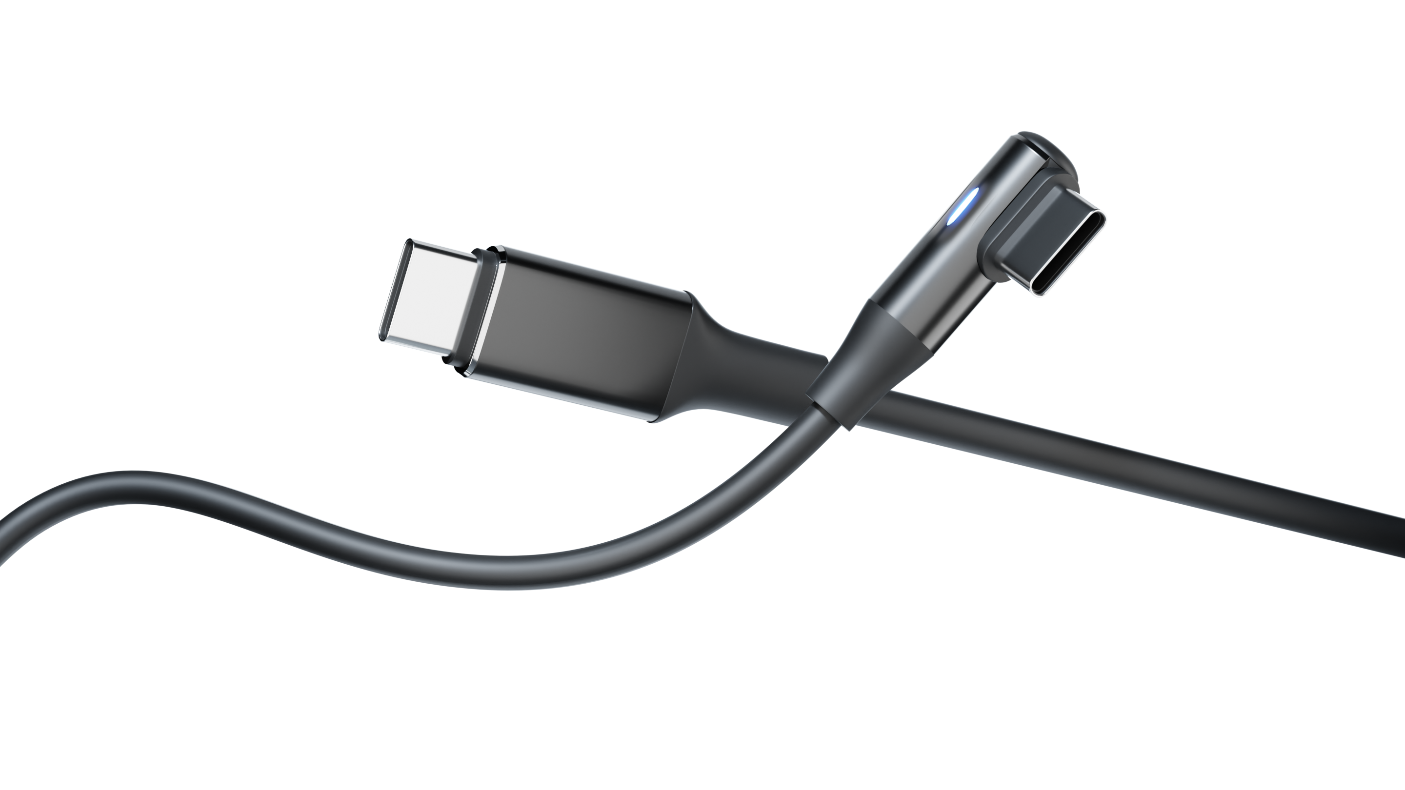 A:全てのリターンの各商品にLED付きL字型のケーブルが付属しております。100W対応ケーブルです。