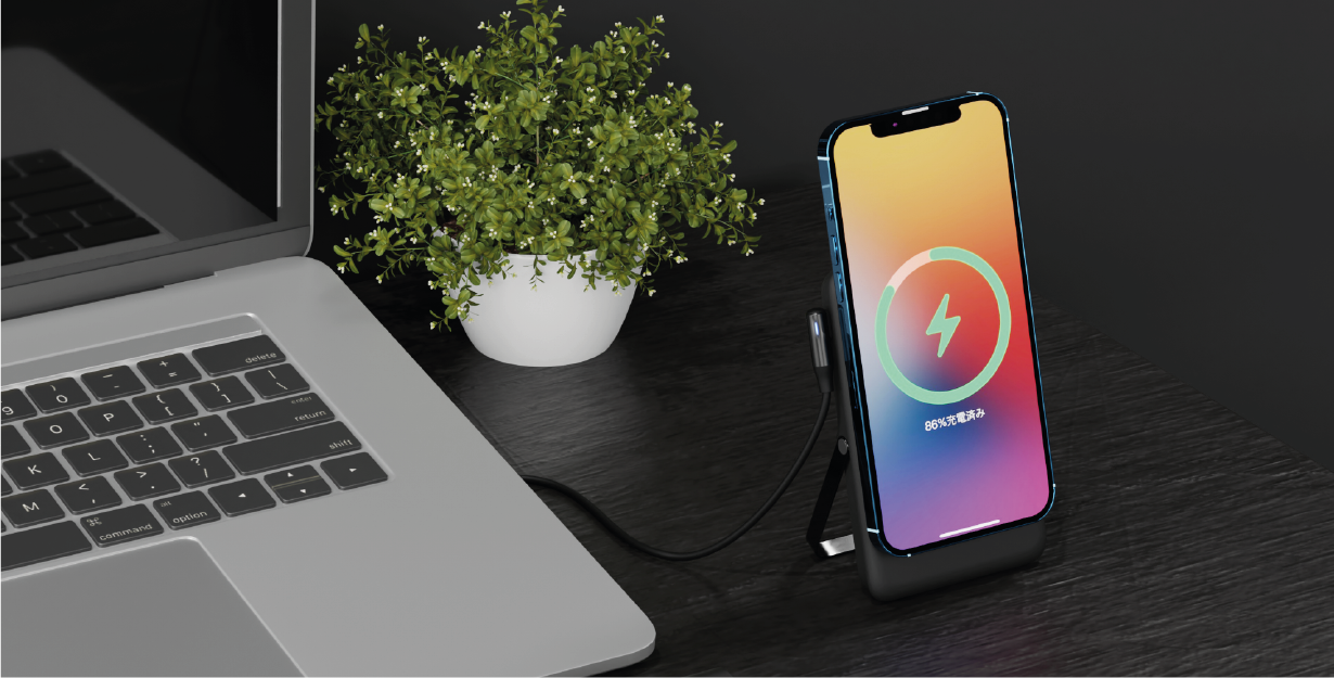 移動中に充電しようとすると手元はごちゃごちゃするしかさばる…。さらにそのための充電コートを持ち歩く必要もあり、面倒でしたよね。