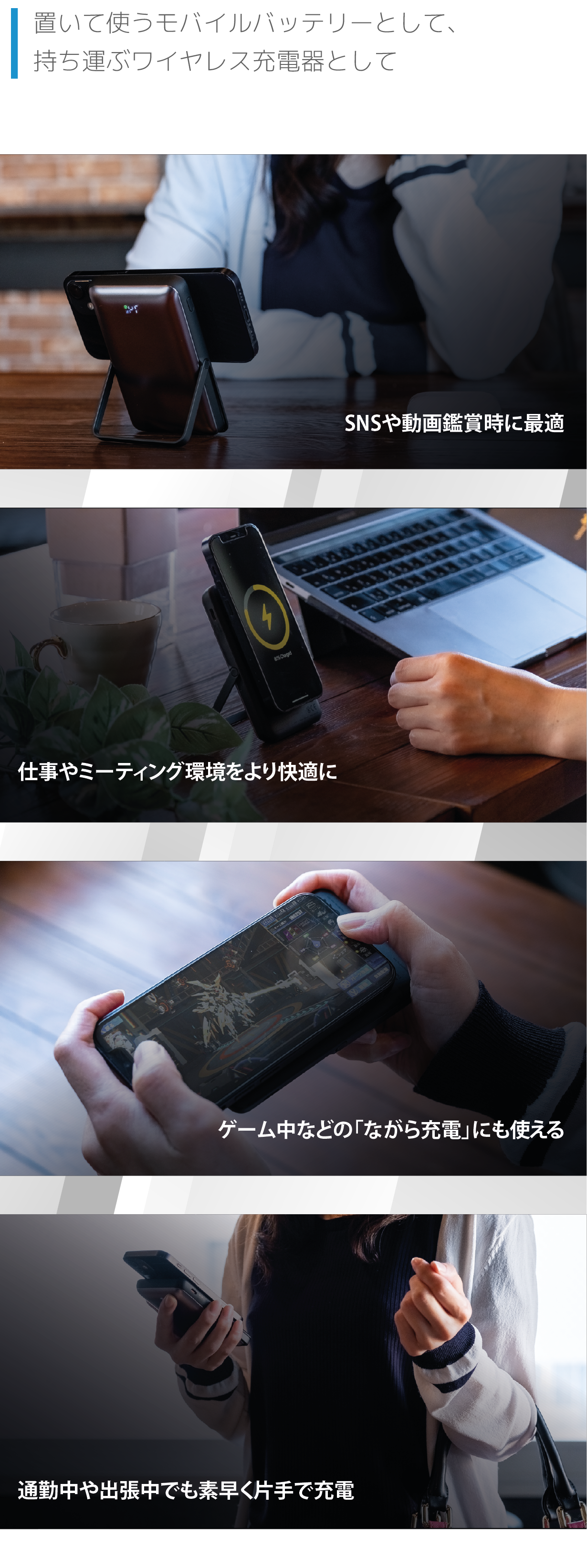 …などさまざまな場面で“ながら充電”が可能。