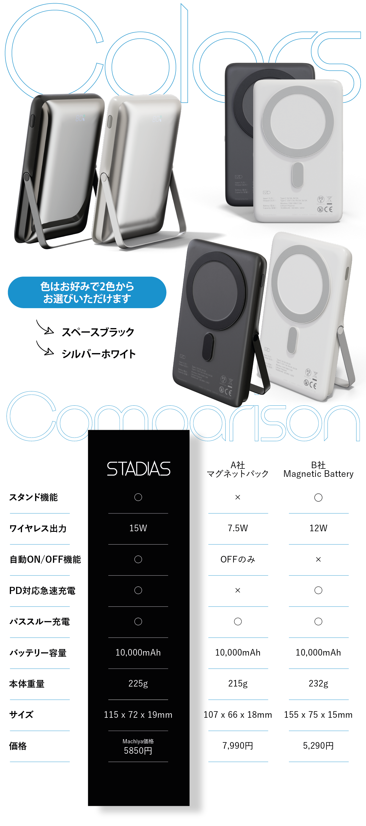 【EZO STADIAS】はマグネット内蔵でスマホにくっついてくれるから、手元スッキリ!