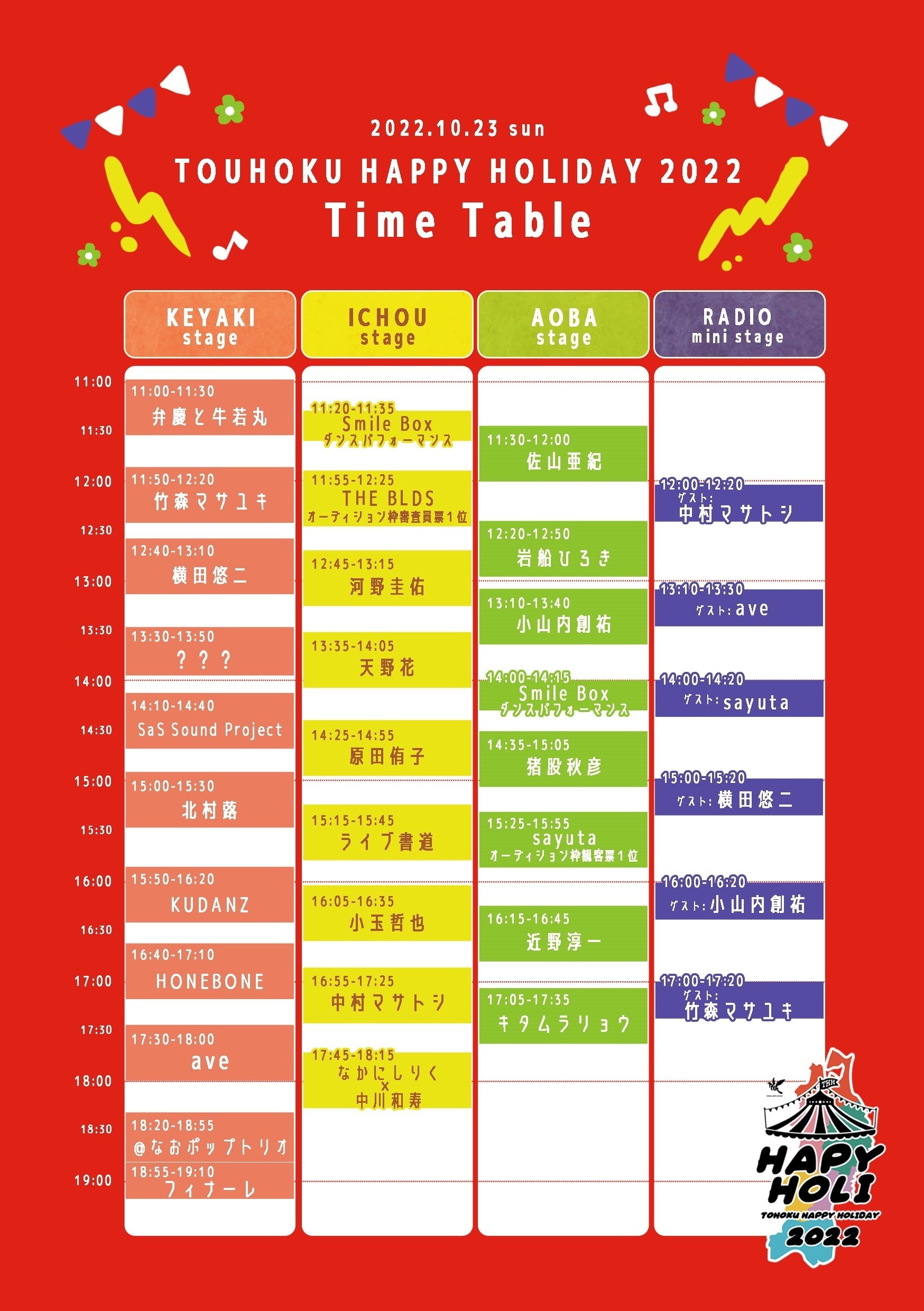 10/23(日)東北HAPPYHOLIDAY2022のタイムテーブル発表です!!!!