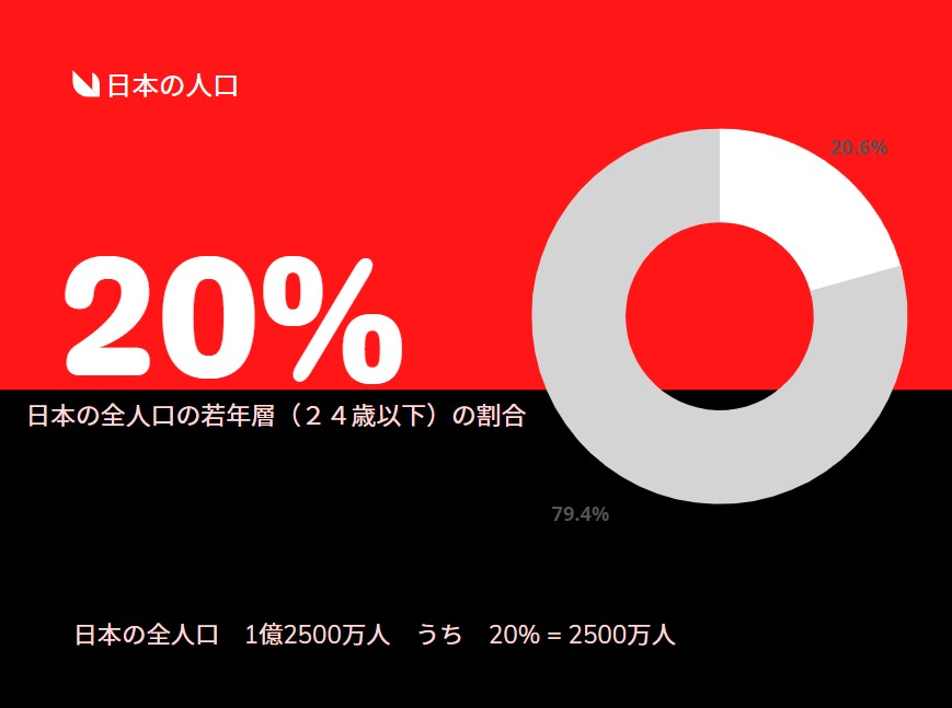 現在、日本の全人口 1 億 2500 万人の約 20% (約 2500 万人)しかいないんです。