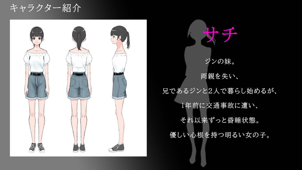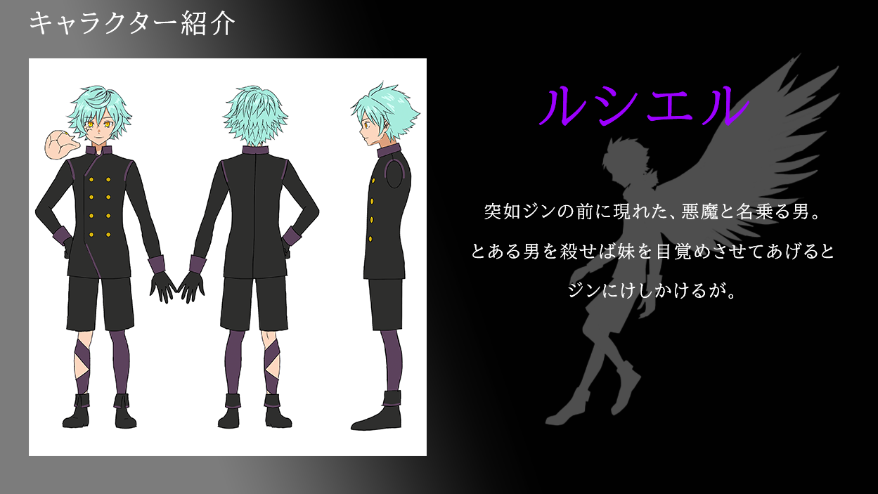 「二寸先は永遠の光」に登場するキャラクターのである「ジン」「サチ」「ルシエル」 の 3 人のデザイン画を公開します!