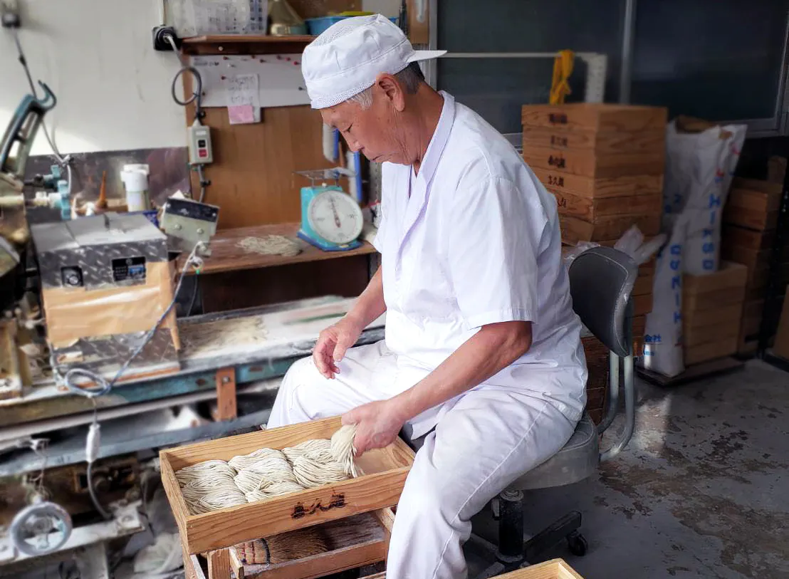 秋田県羽後町の名物、西馬音内(にしもない)そばを世に広めたいという思いを持って、コロナ禍でしたがピンチをチャンスに変えるべく、故郷秋田の有名店、百姓そば屋「彦三(ひこさ)」にて勉強させていただき、その味を学んできました。地元では有名なそば屋さんで、お昼には行列のできる日もあるほどです。