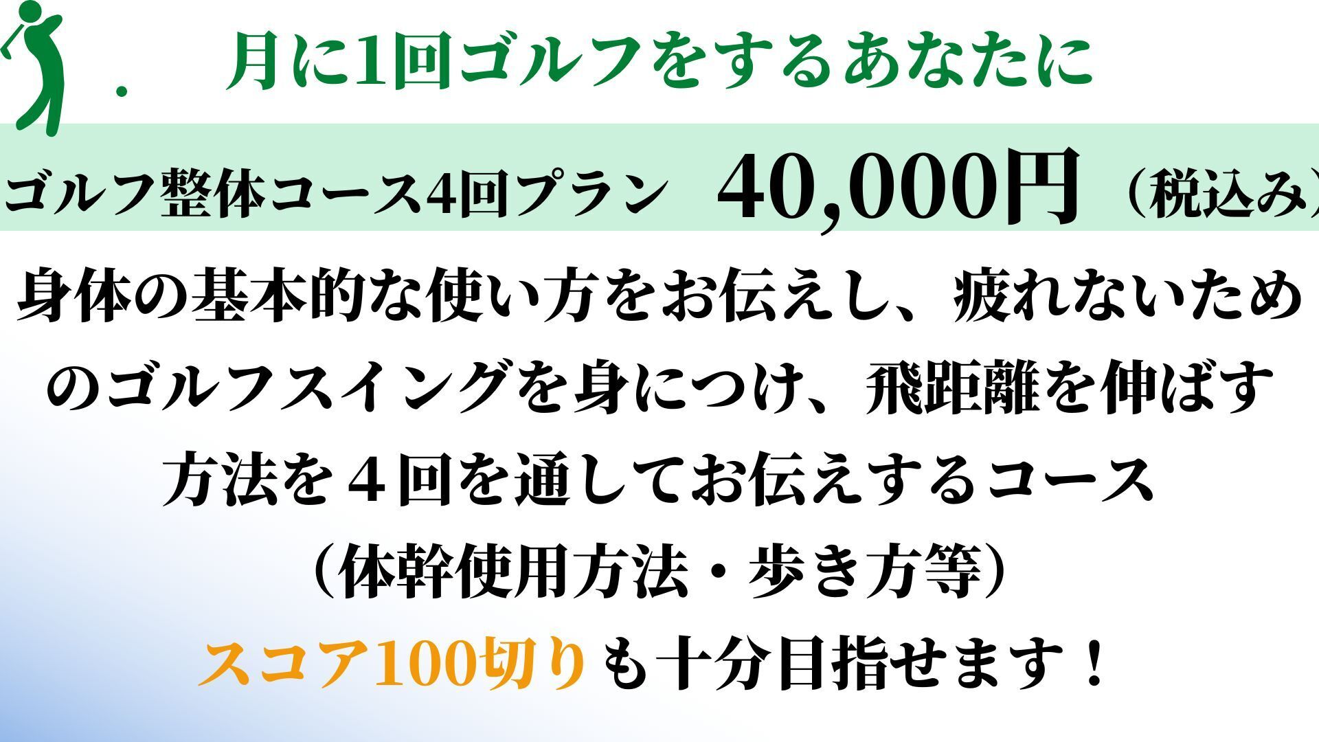 ゴルフ初心者の方も、そうでない方も含めて正しい身体の使い方を理解し身につけ、ゴルフを楽しんでいただければと思っています。