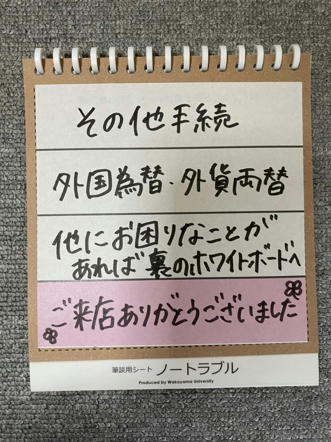 銀行では、簡単な手続きと複雑な手続きで分かれているため、窓口によって指差しシートの内容を変えて使って頂きました!!