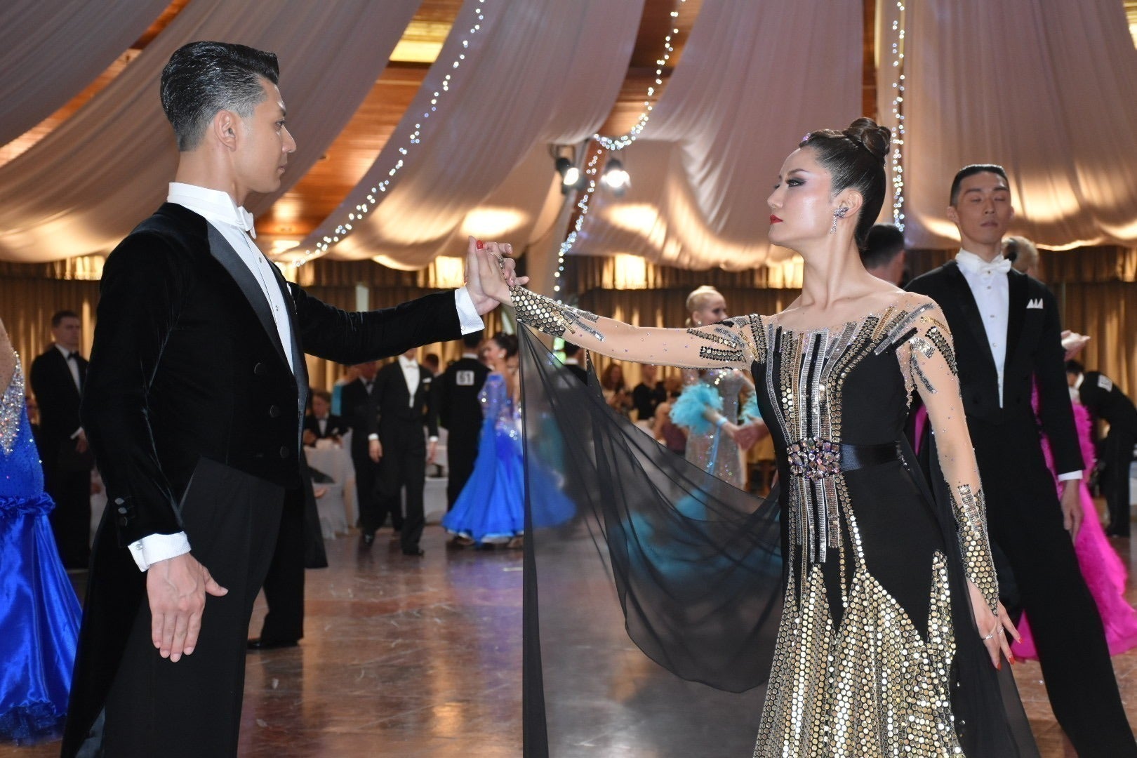 ▼「スタンダード」は、男女が腕を組んで踊るもので、「ワルツ」や「タンゴ」など5種目。