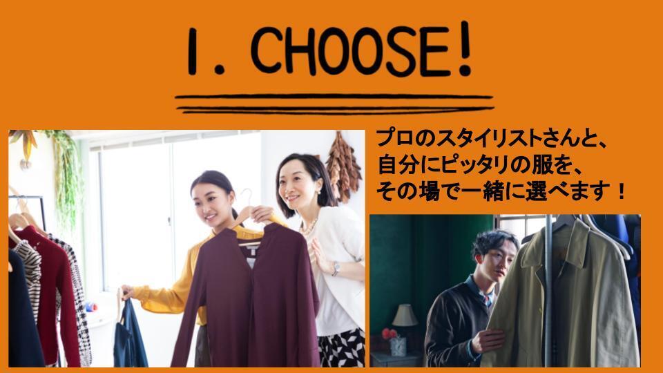 「①コーディネート提案を受け、②更衣室で着替え、③写真撮影をする。」という流れで進みます。