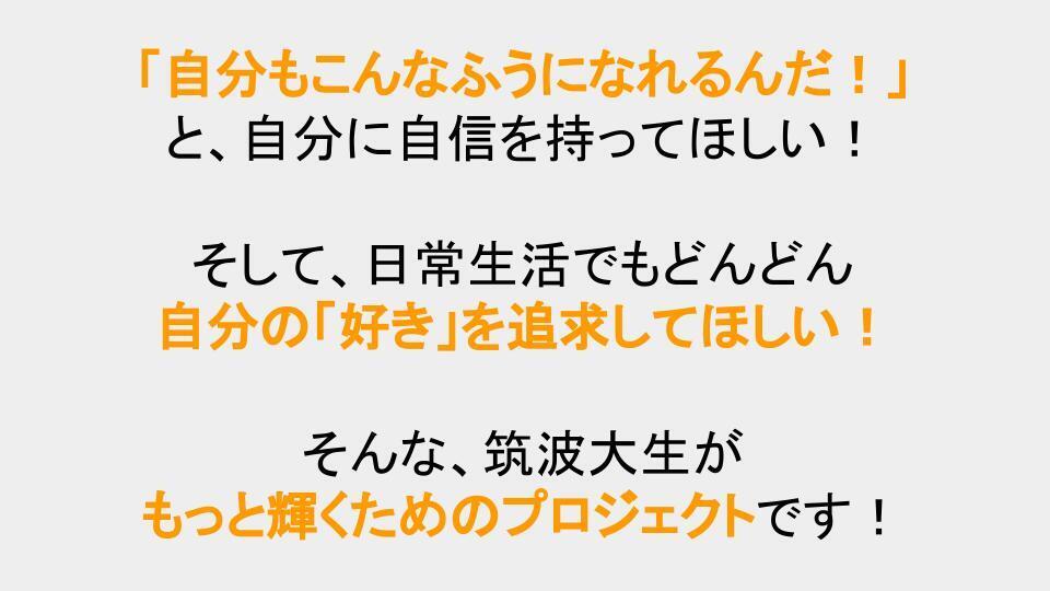 どんな理由でもOKです!一人でも多くの筑波大生が、自分に自信を持って輝くキッカケにしたいです!