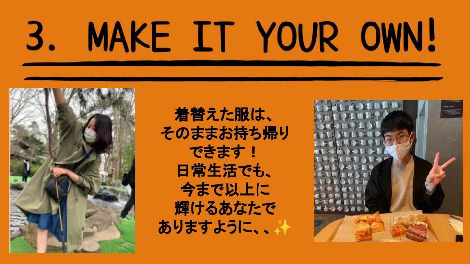 希望者は、コーディネートされた服を1日着て、学園祭を回ることができます。